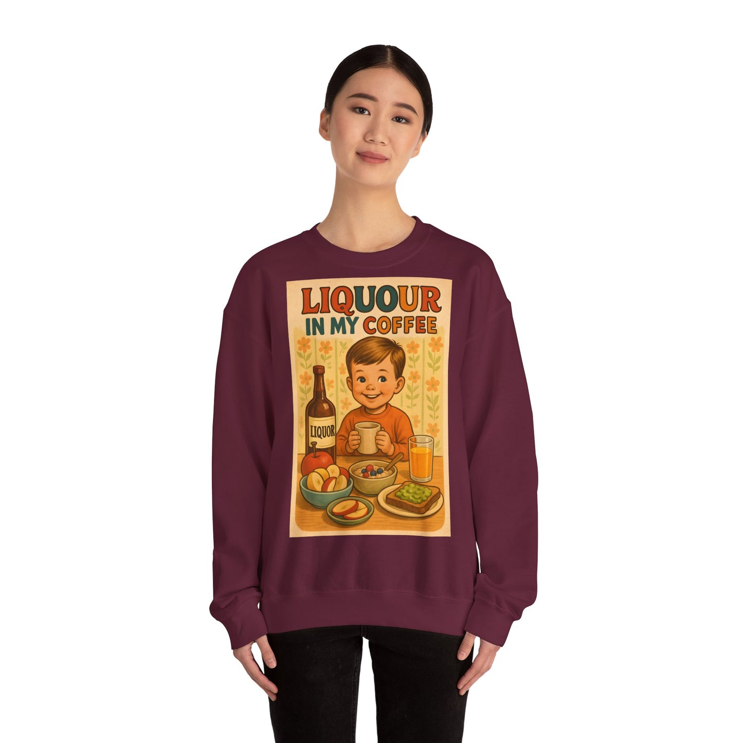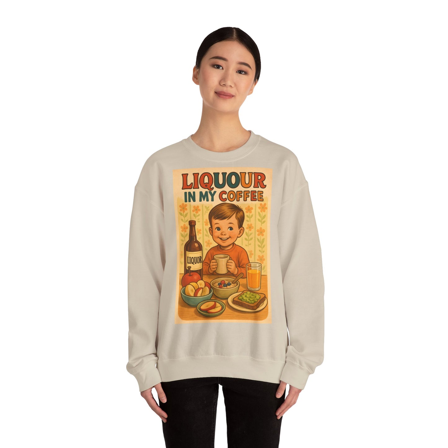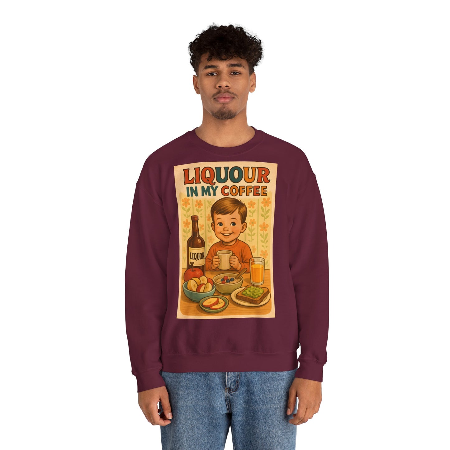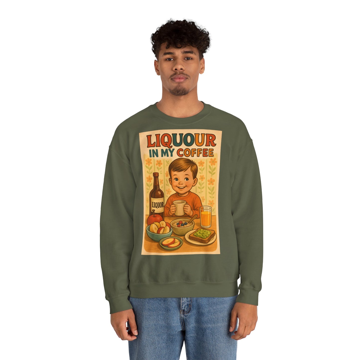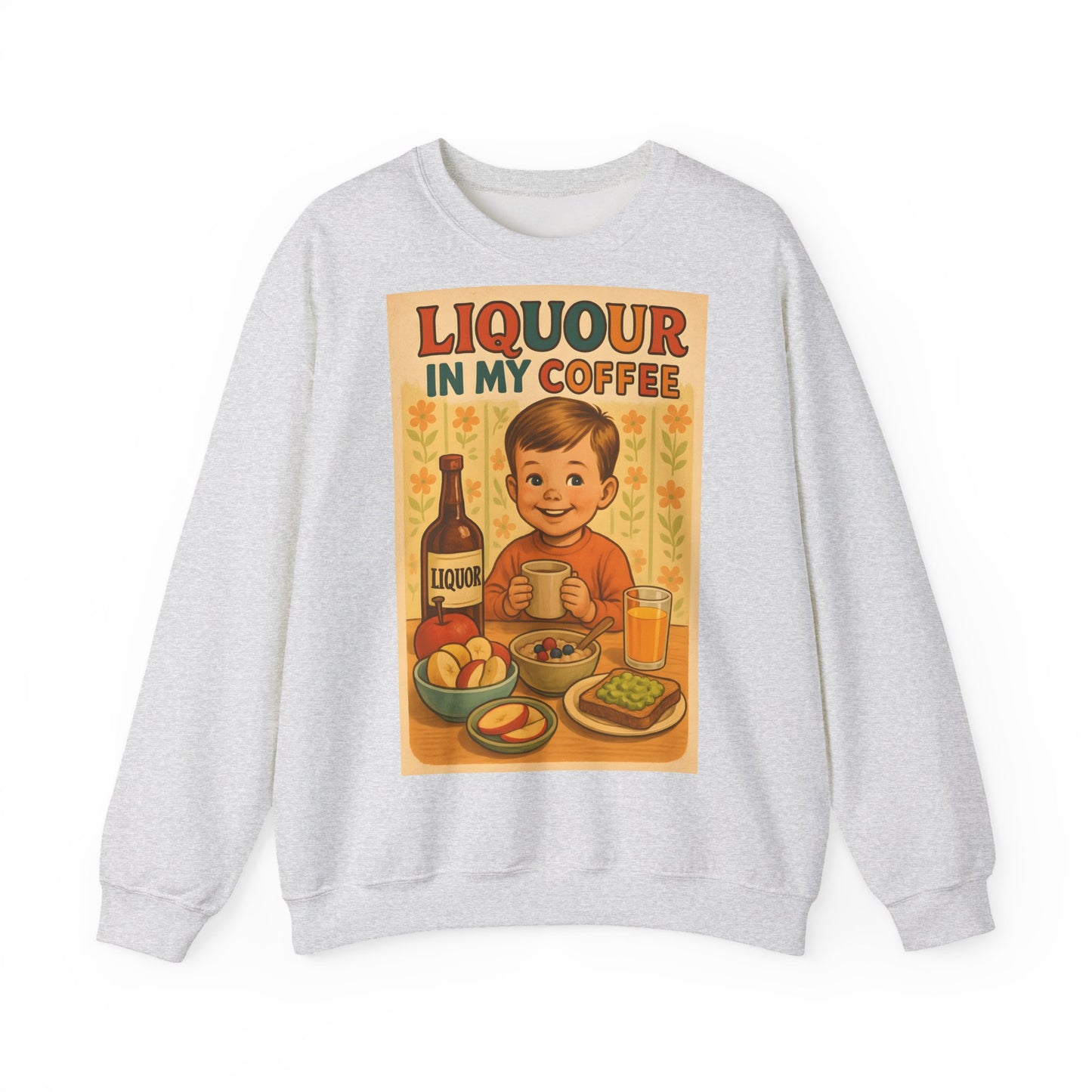 Liquor In My Coffee Sweatshirt | Retro breakfast sweater with satirical motif | Gift for coffee fans with a sense of humor