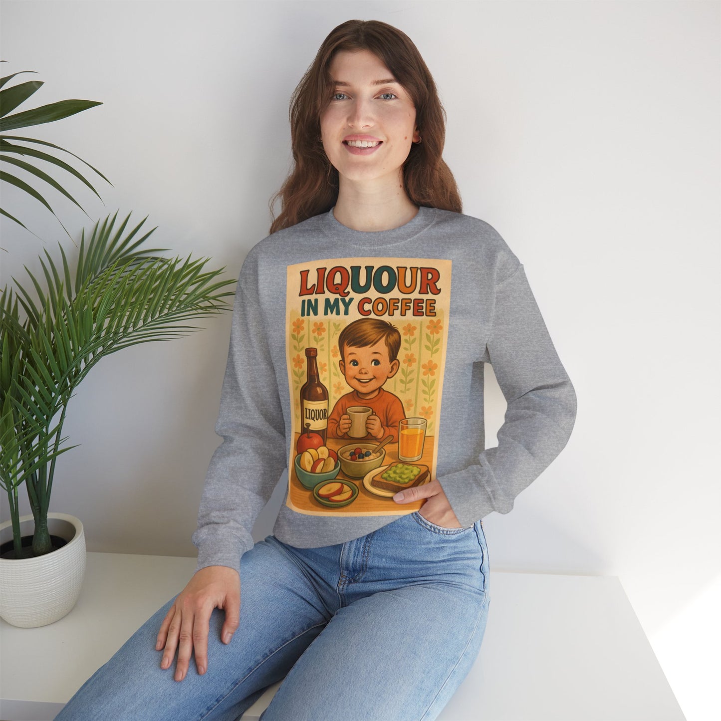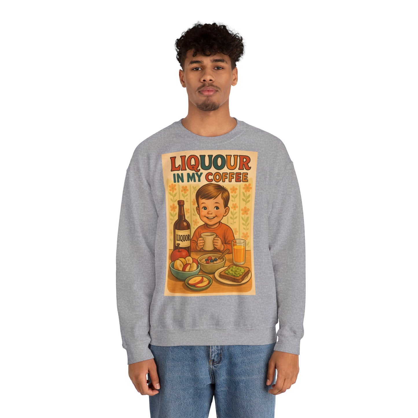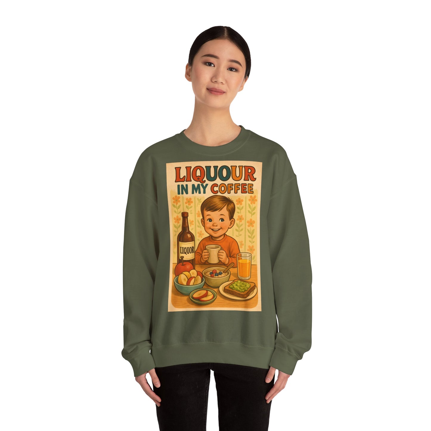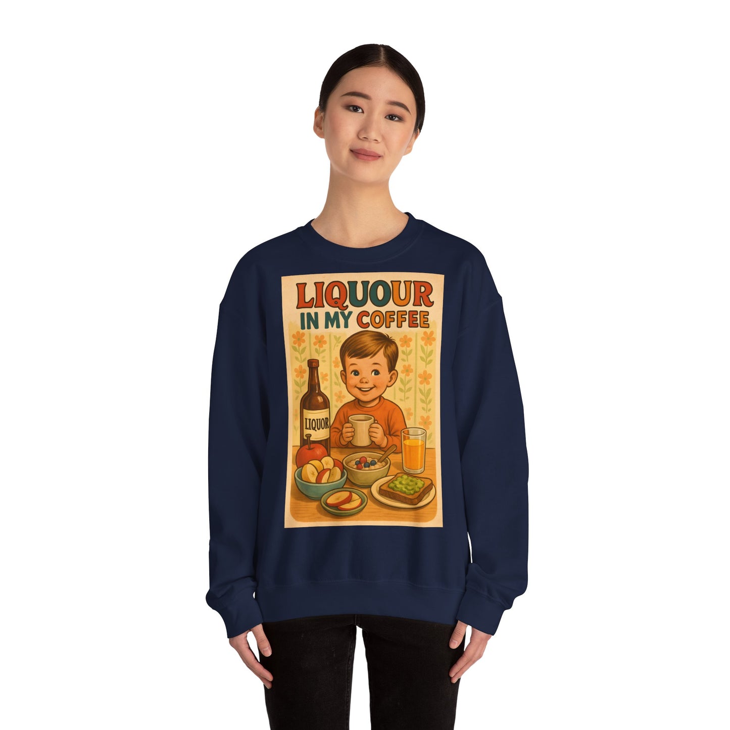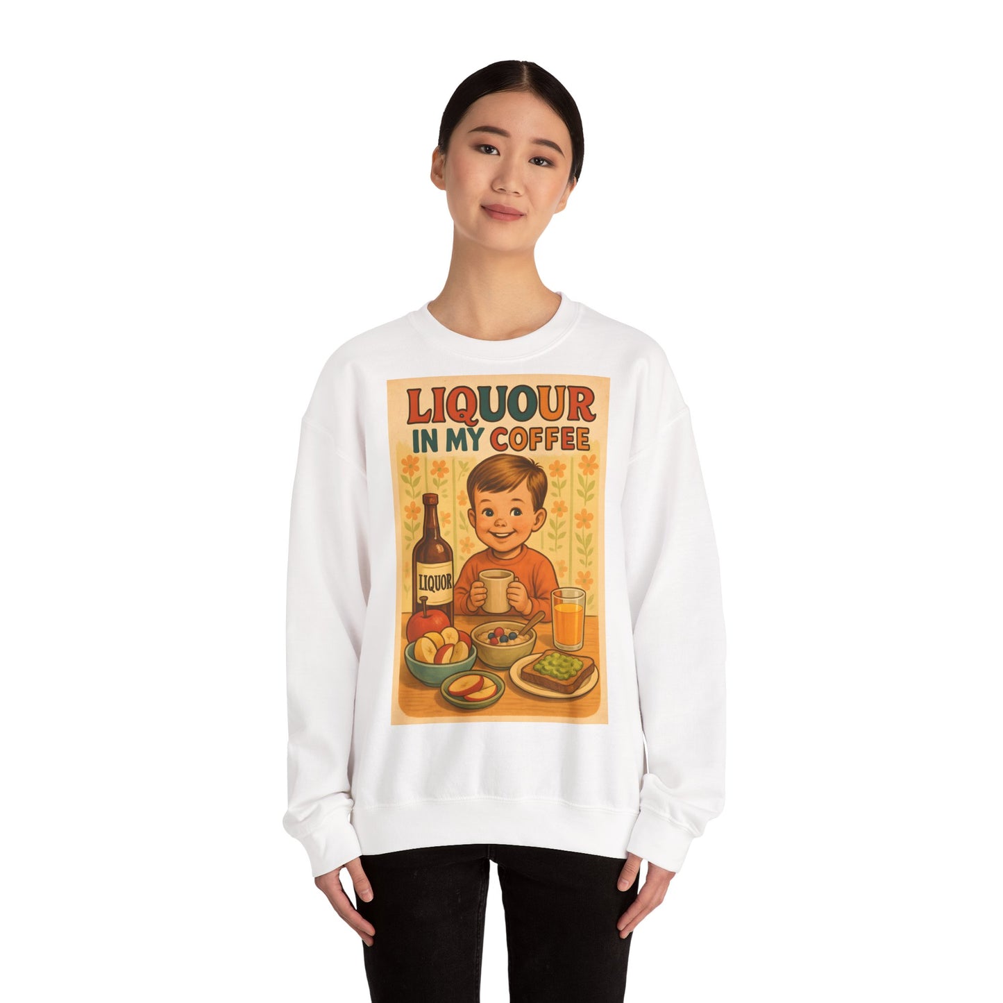 Liquor In My Coffee Sweatshirt | Retro breakfast sweater with satirical motif | Gift for coffee fans with a sense of humor