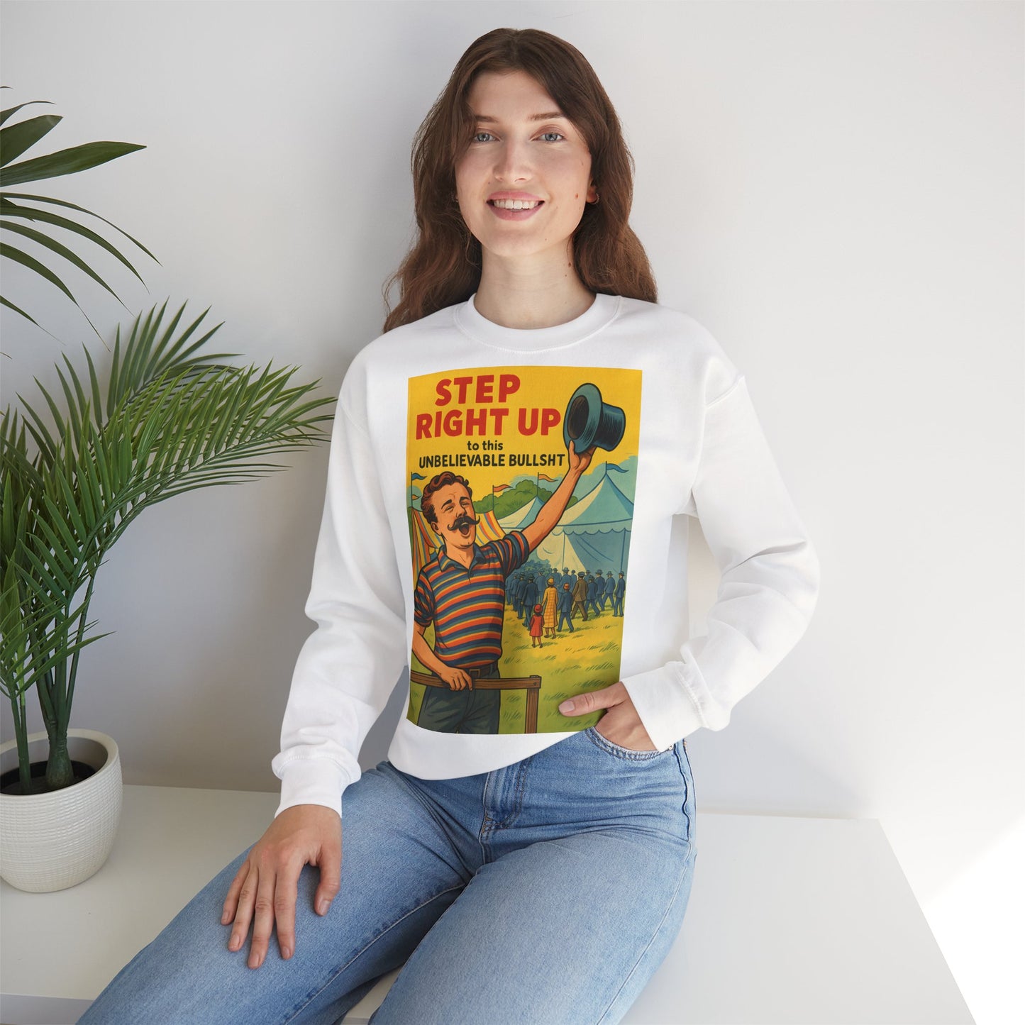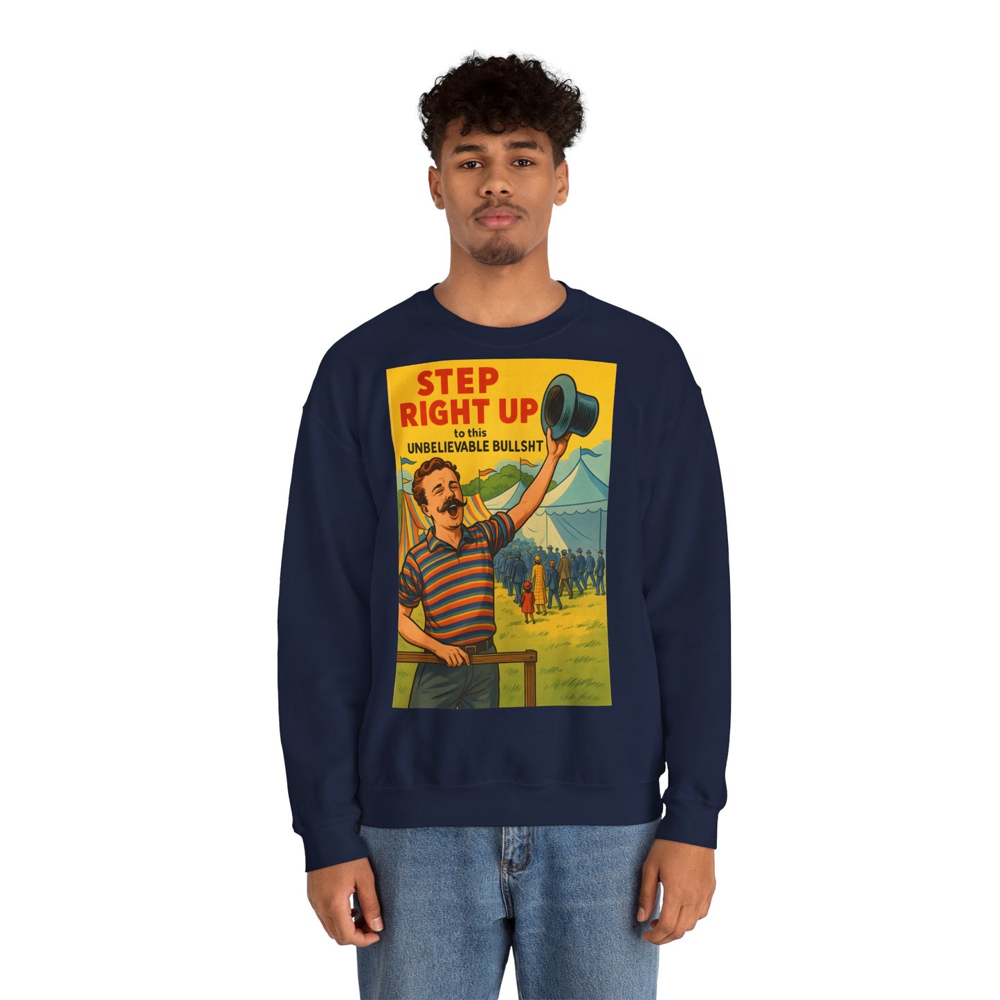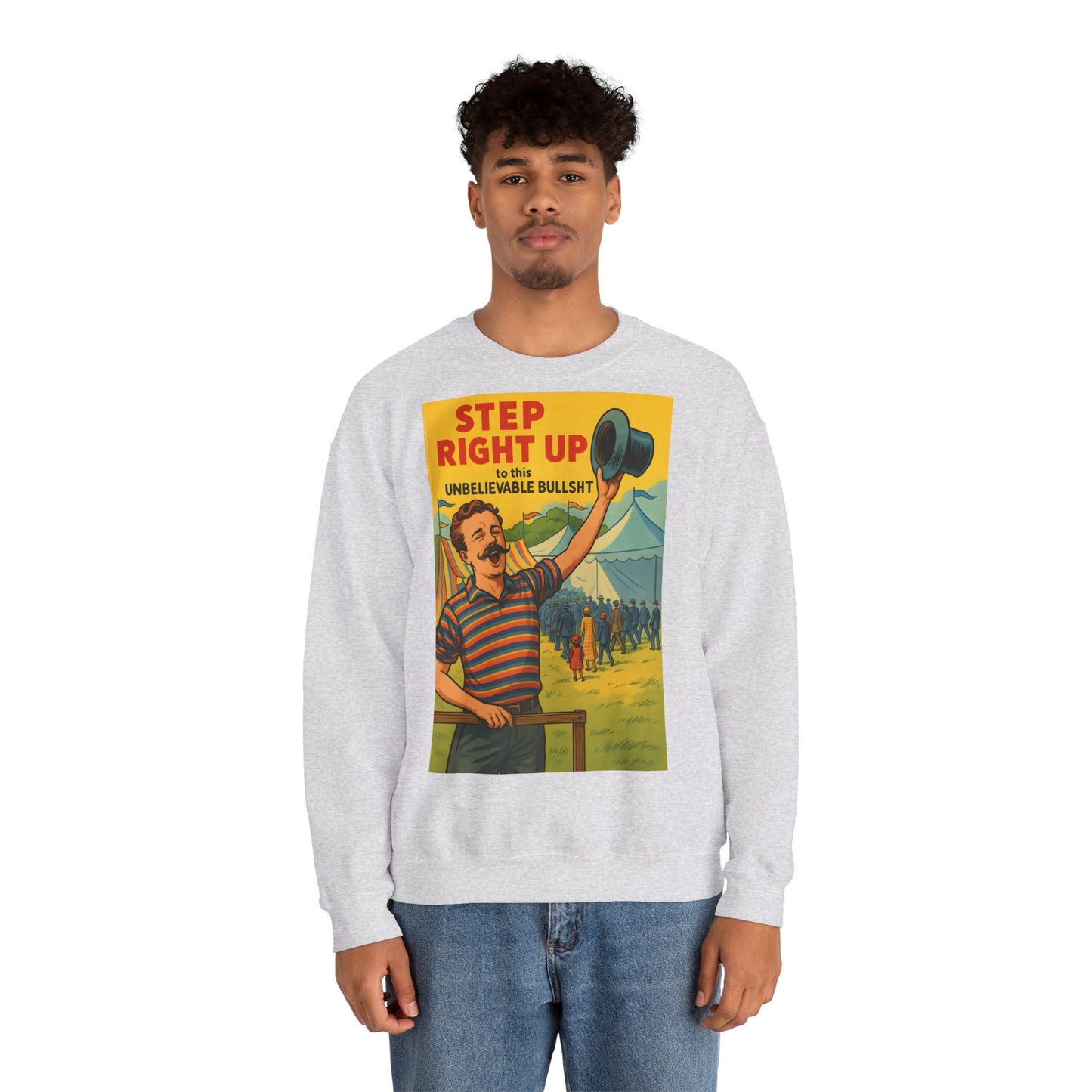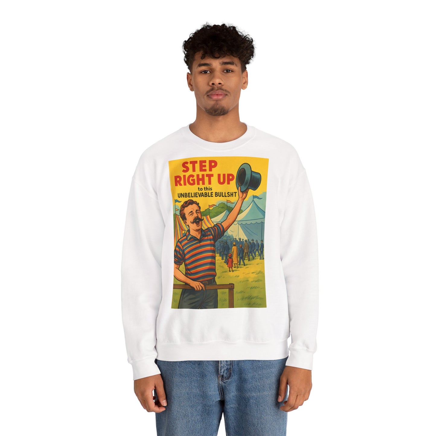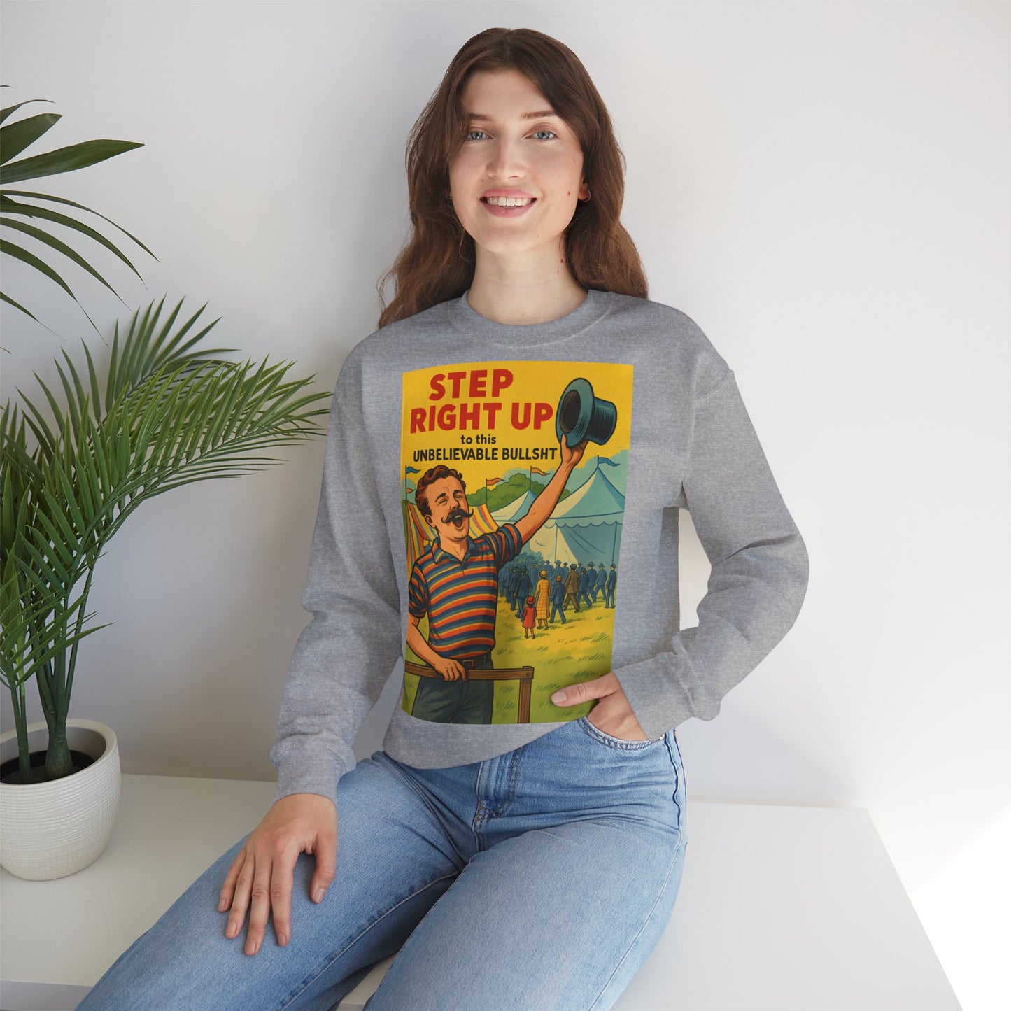 Step Right Up Sweatshirt – Vintage circus motif with satire | Unisex retro sweater