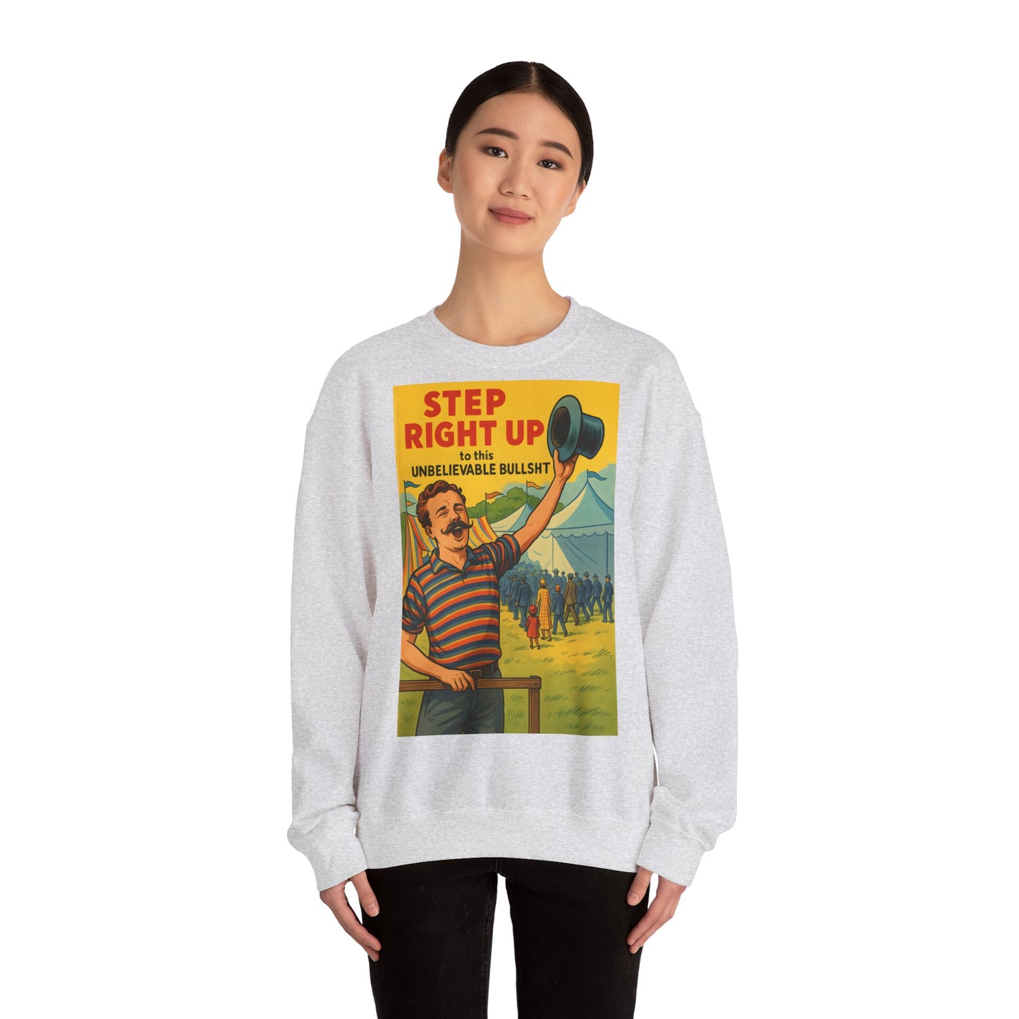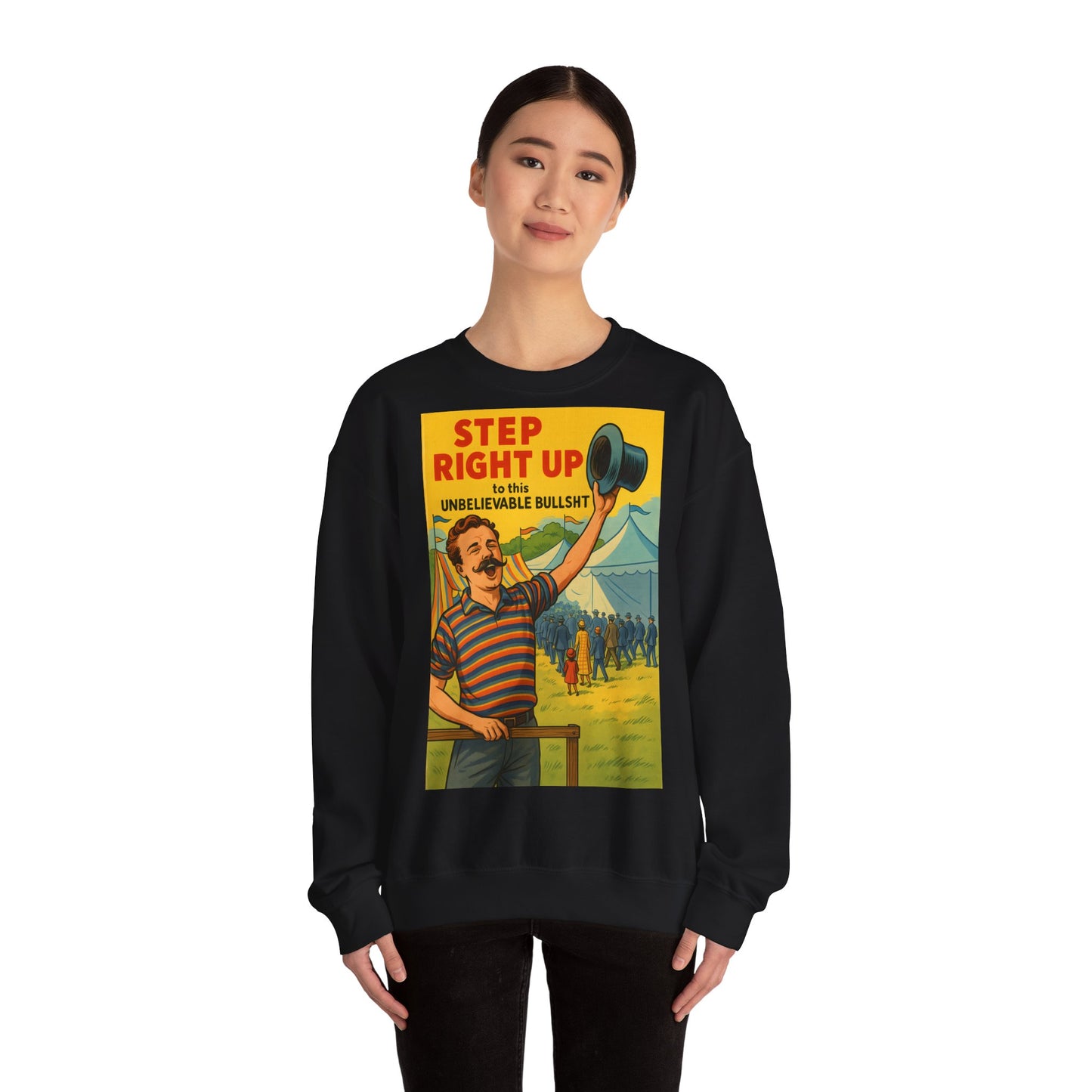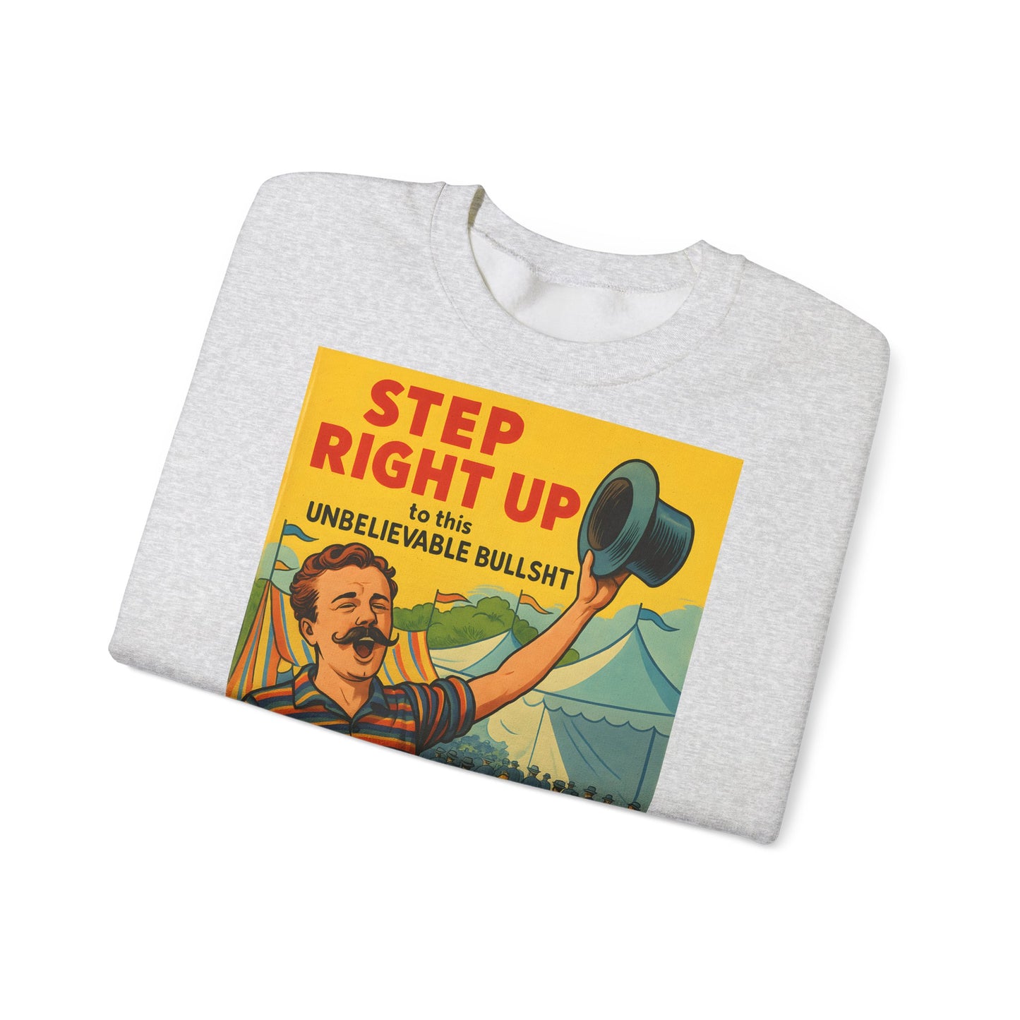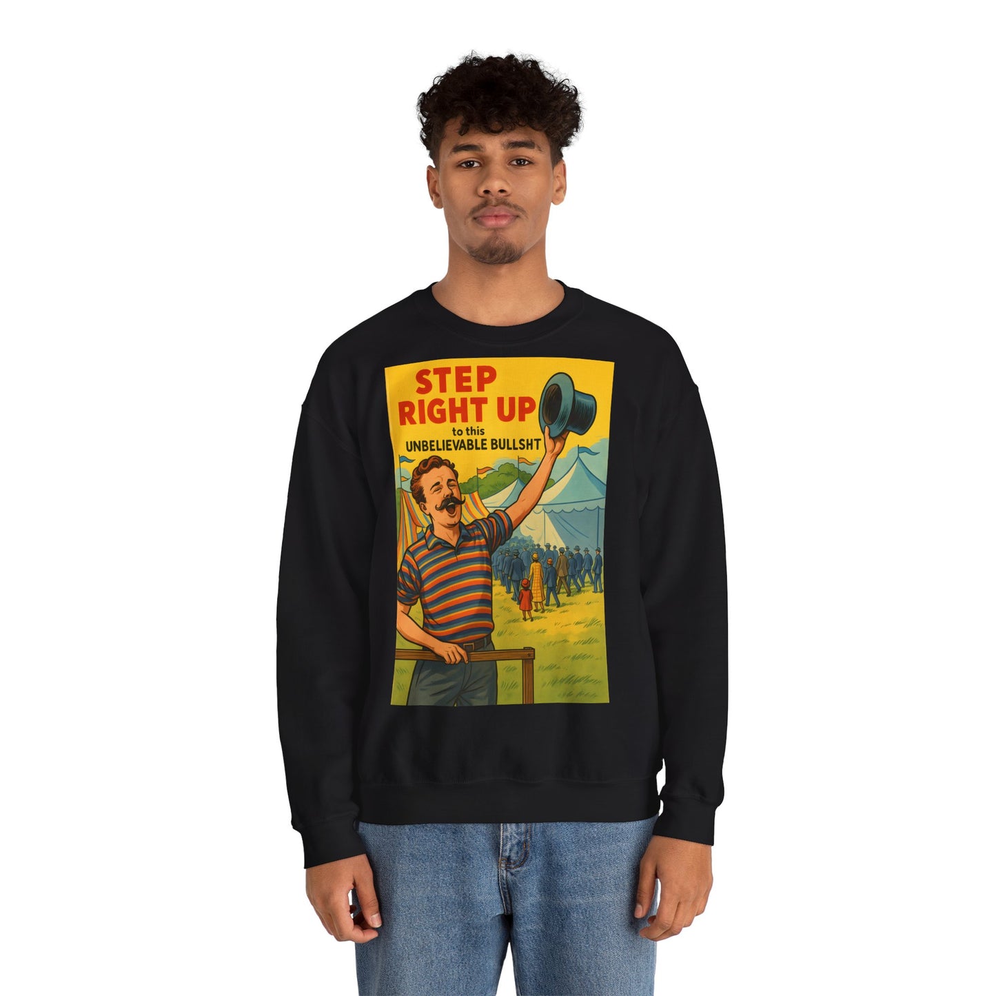 Step Right Up Sweatshirt – Vintage circus motif with satire | Unisex retro sweater