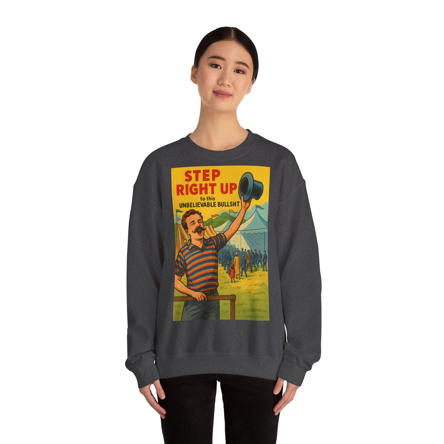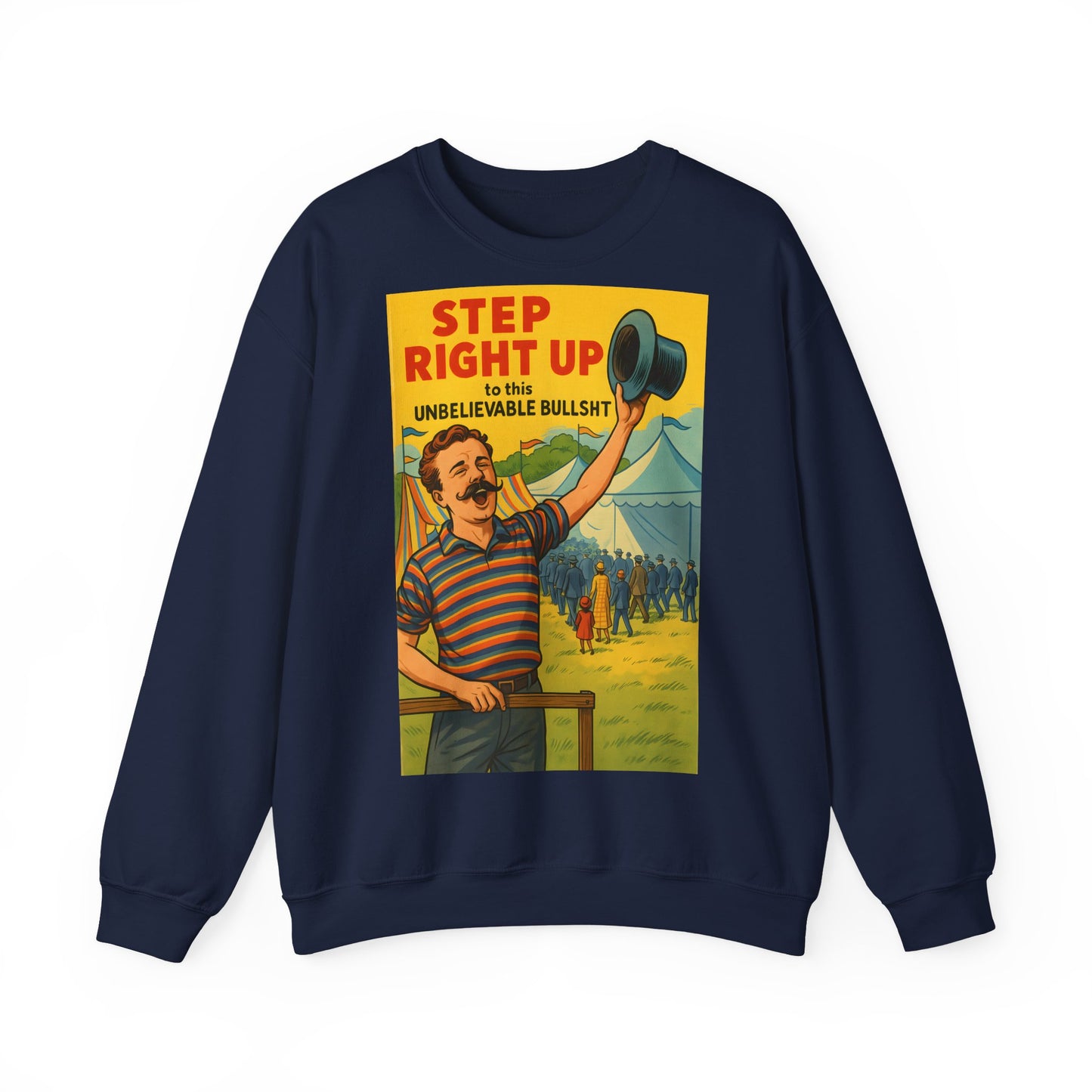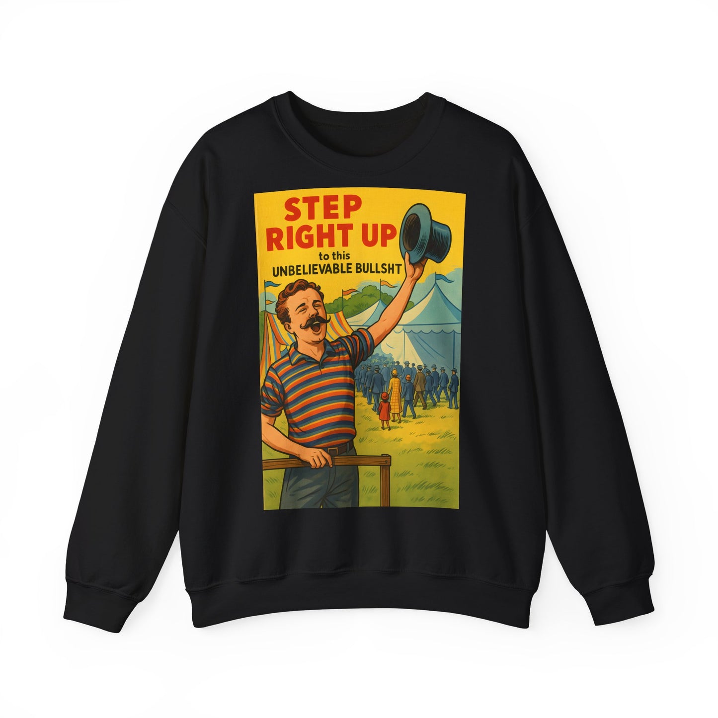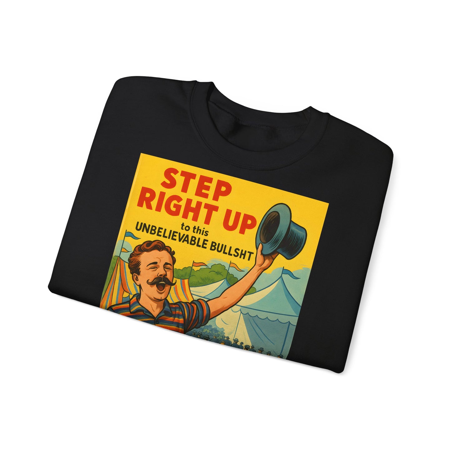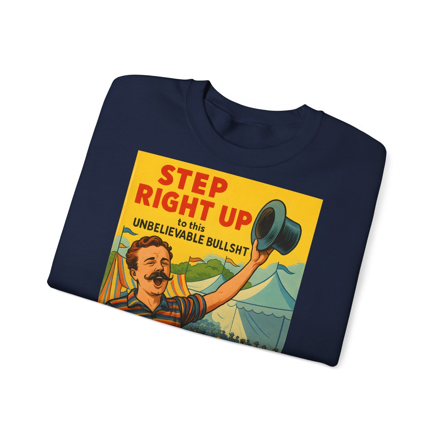 Step Right Up Sweatshirt – Vintage circus motif with satire | Unisex retro sweater