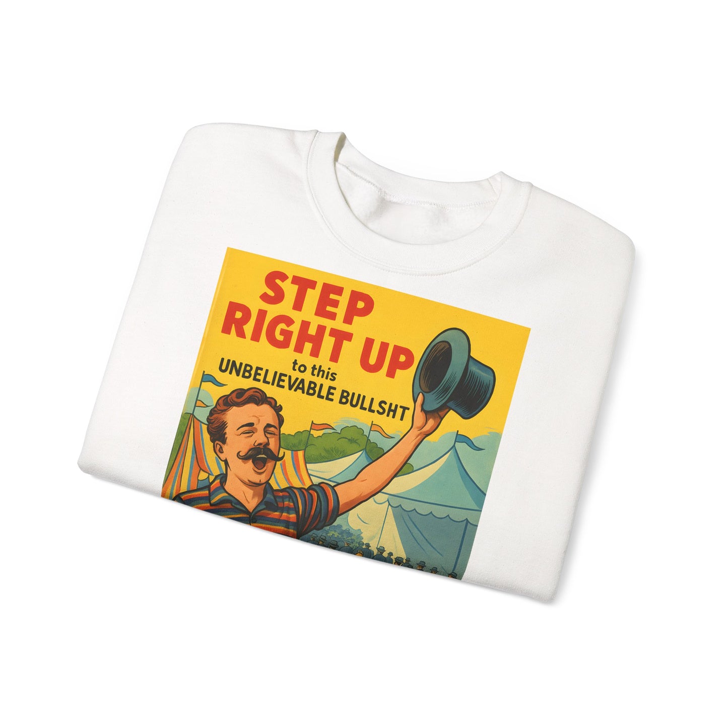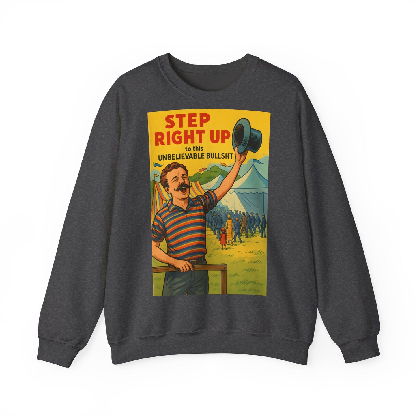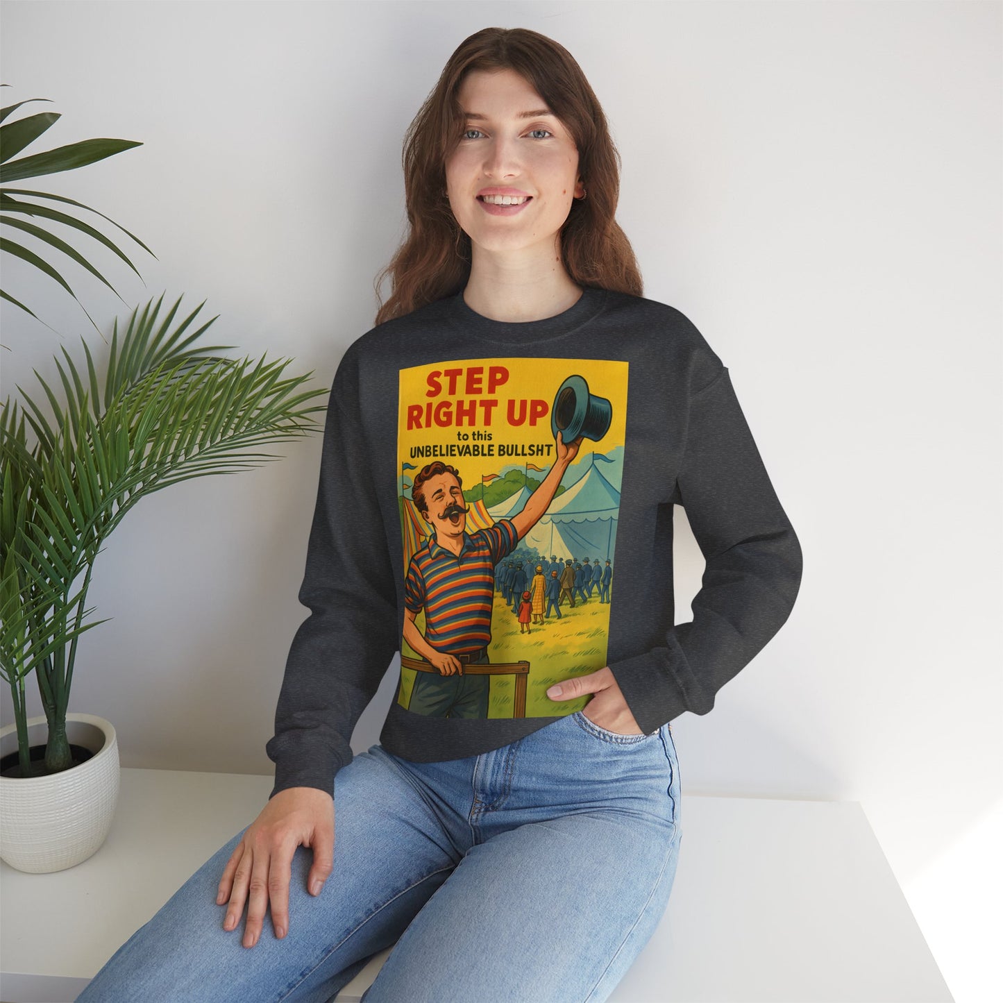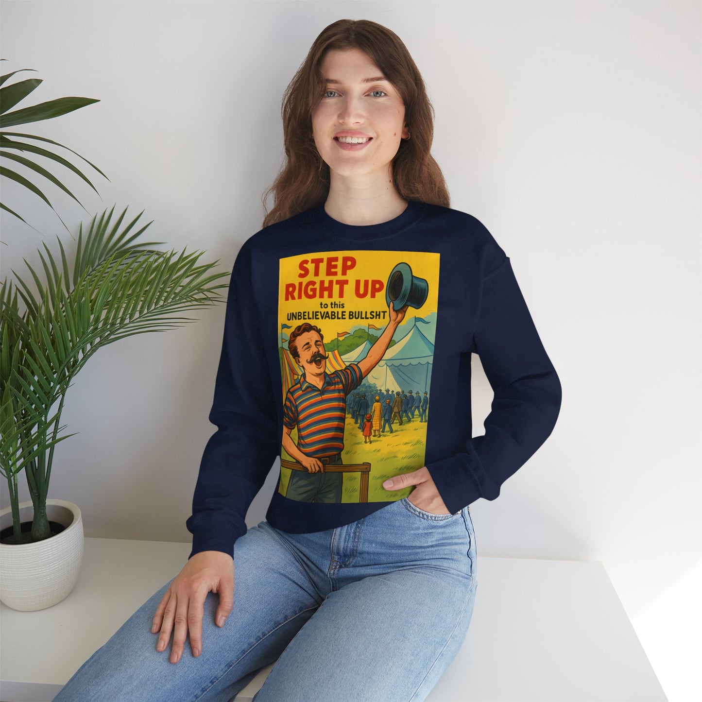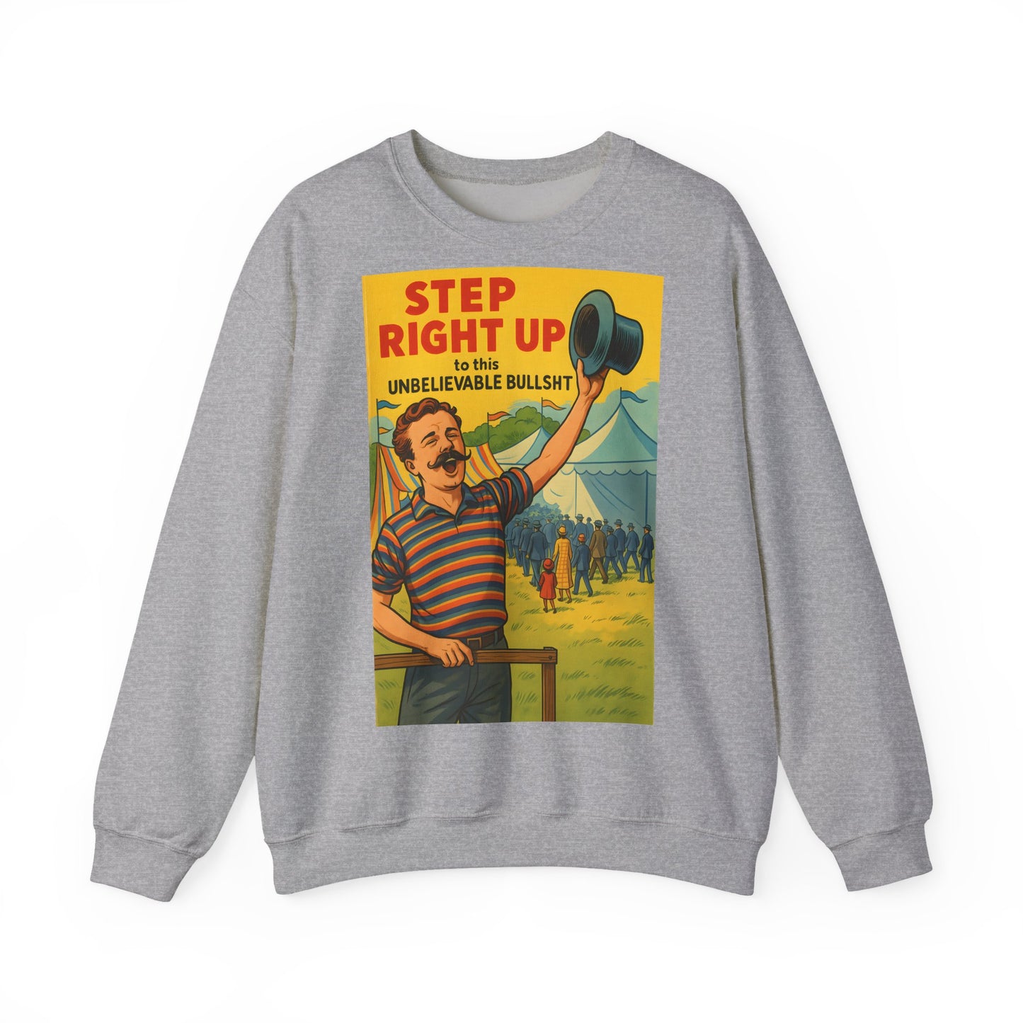 Step Right Up Sweatshirt – Vintage circus motif with satire | Unisex retro sweater