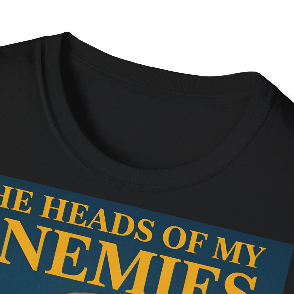 T-shirt “The Heads of My Enemies” – retro satire with children’s book flair