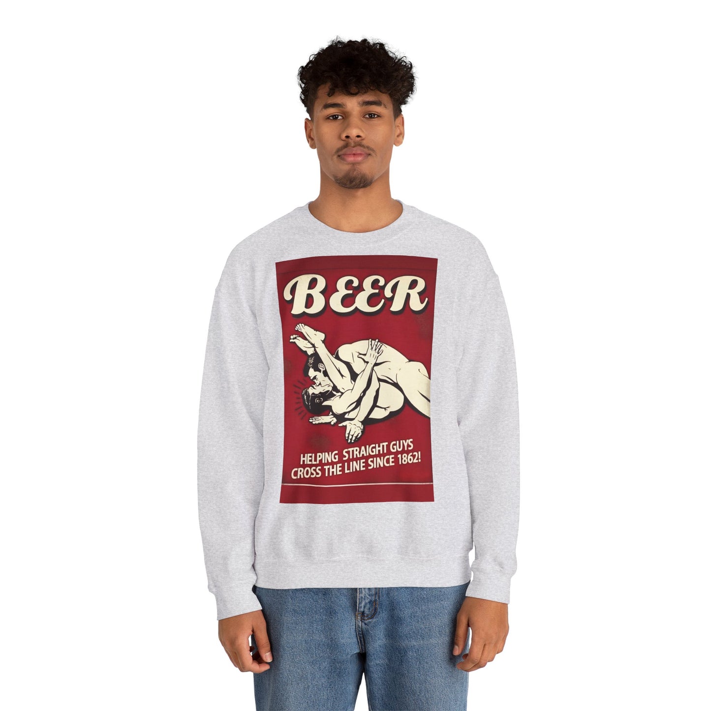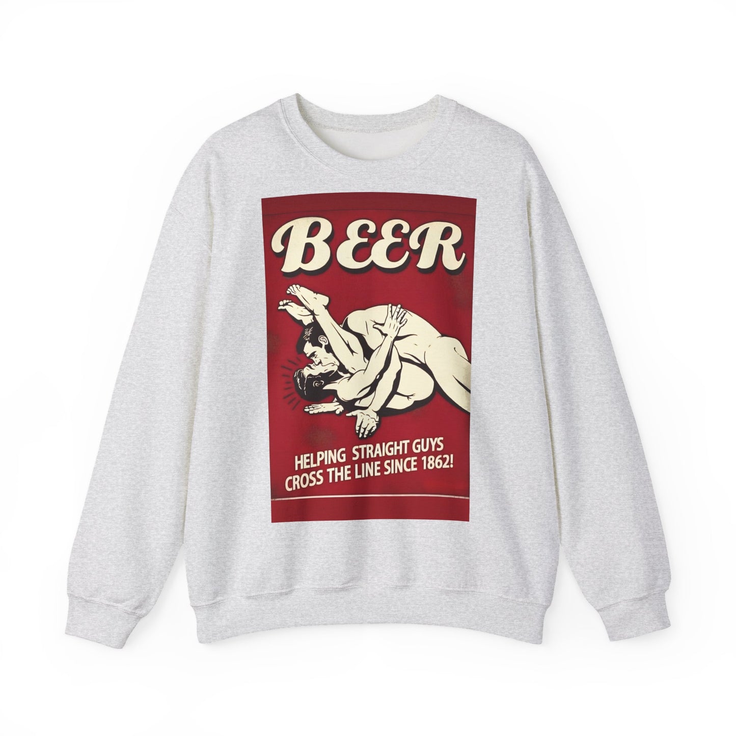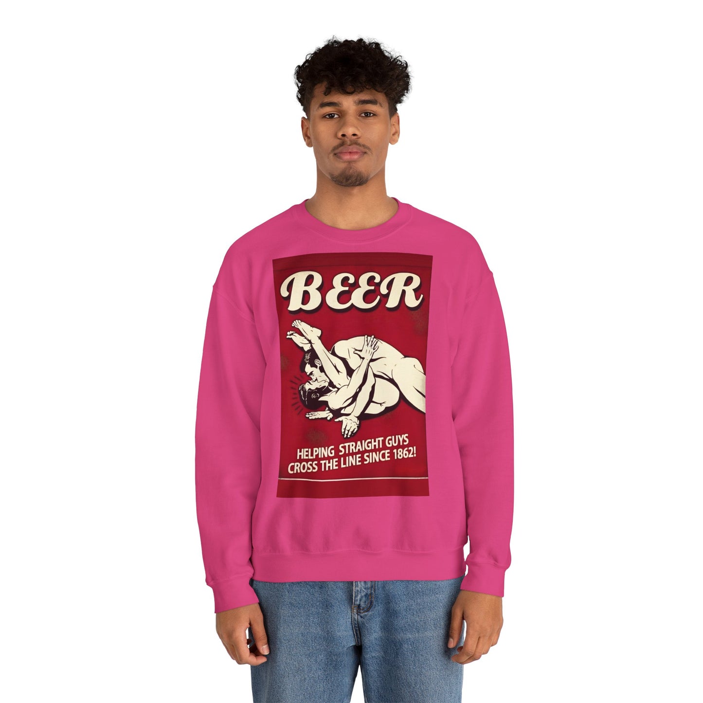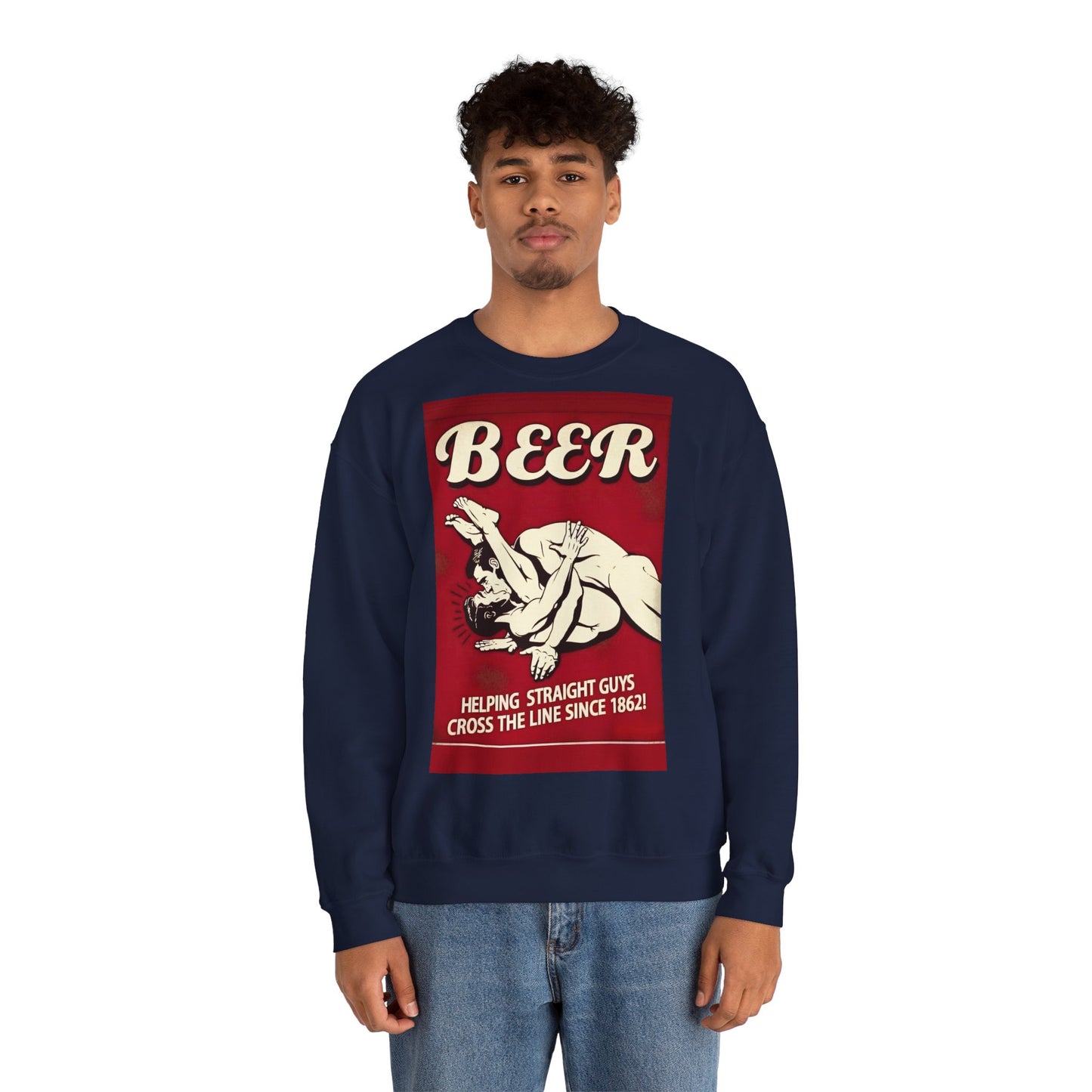 Funny retro beer sweatshirt – BEER - Helping Straight Guys Cross the Line Since 1862! Partywear statement