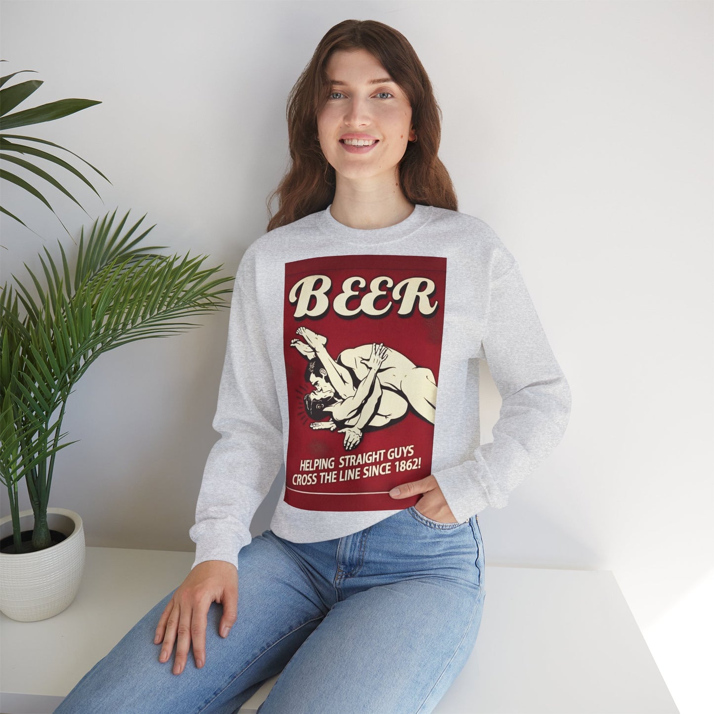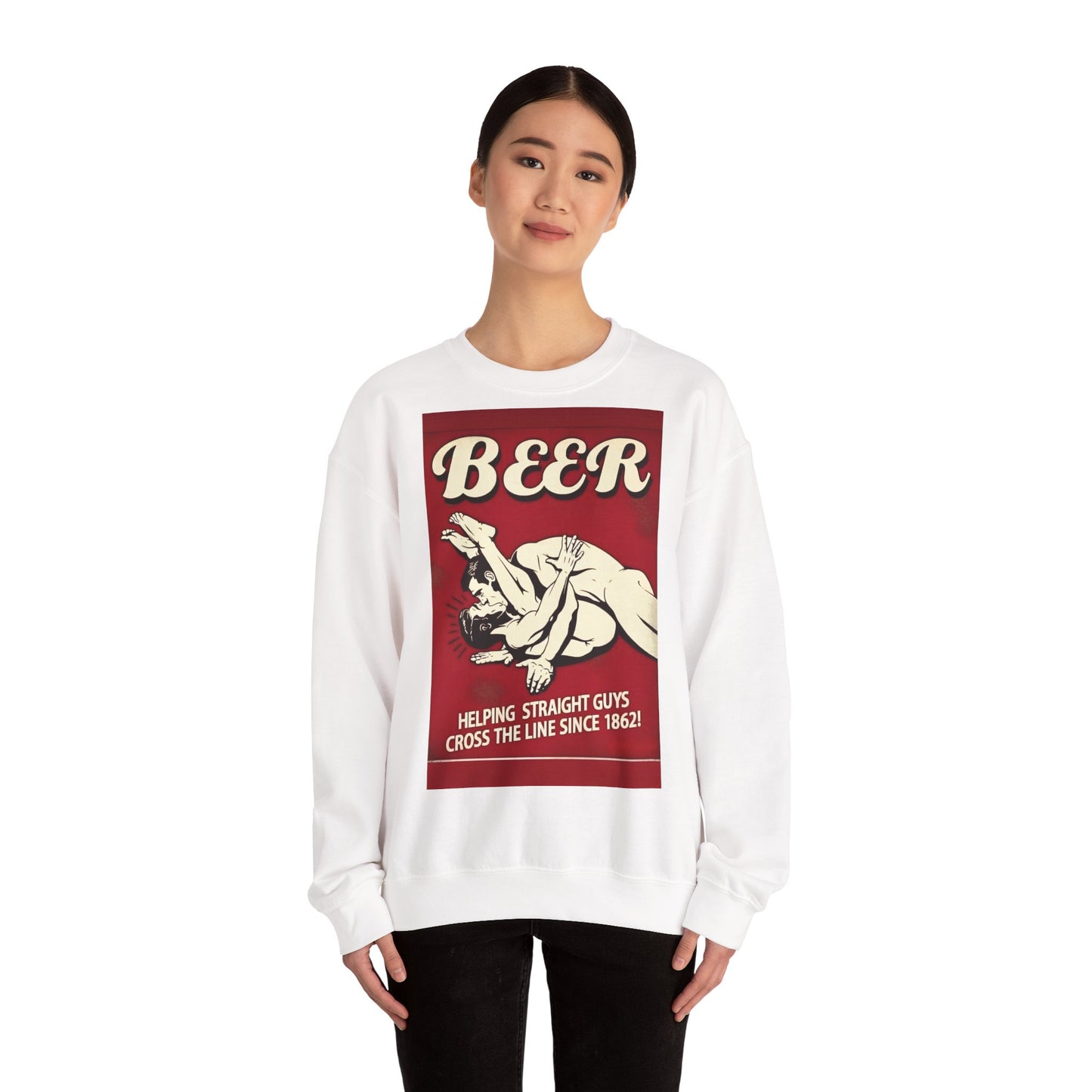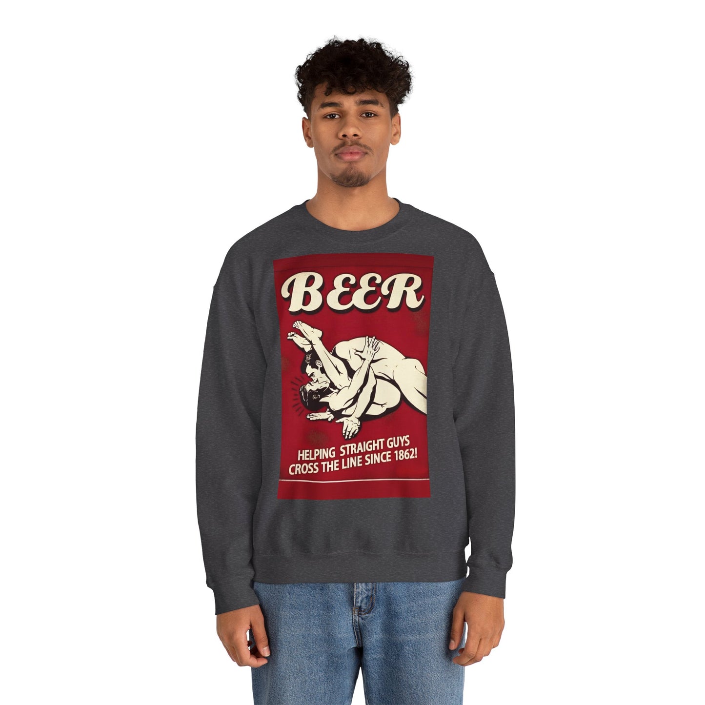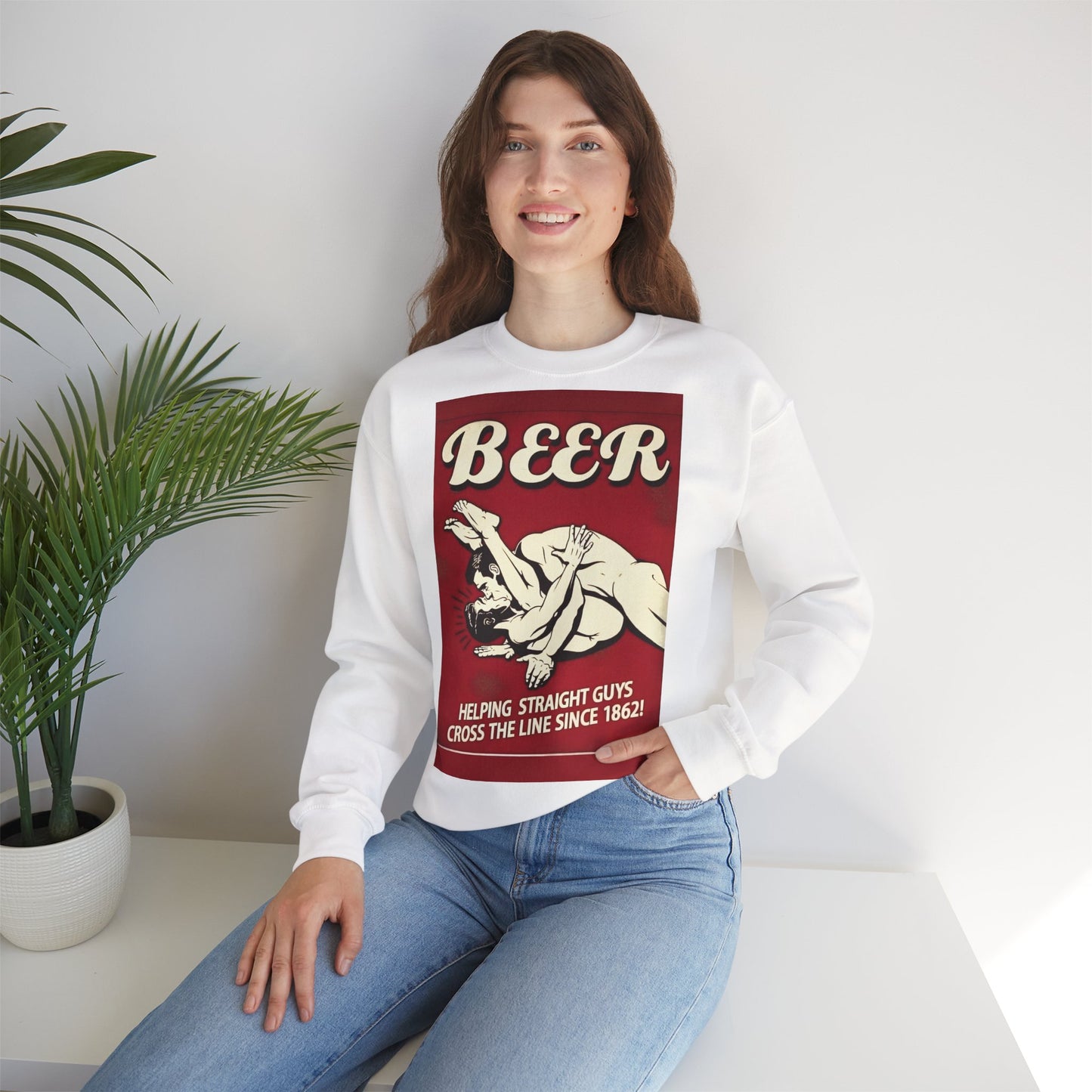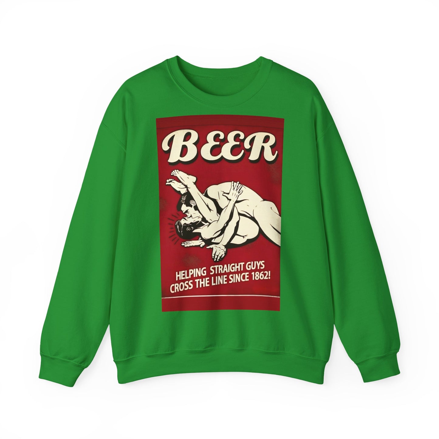 Funny retro beer sweatshirt – BEER - Helping Straight Guys Cross the Line Since 1862! Partywear statement