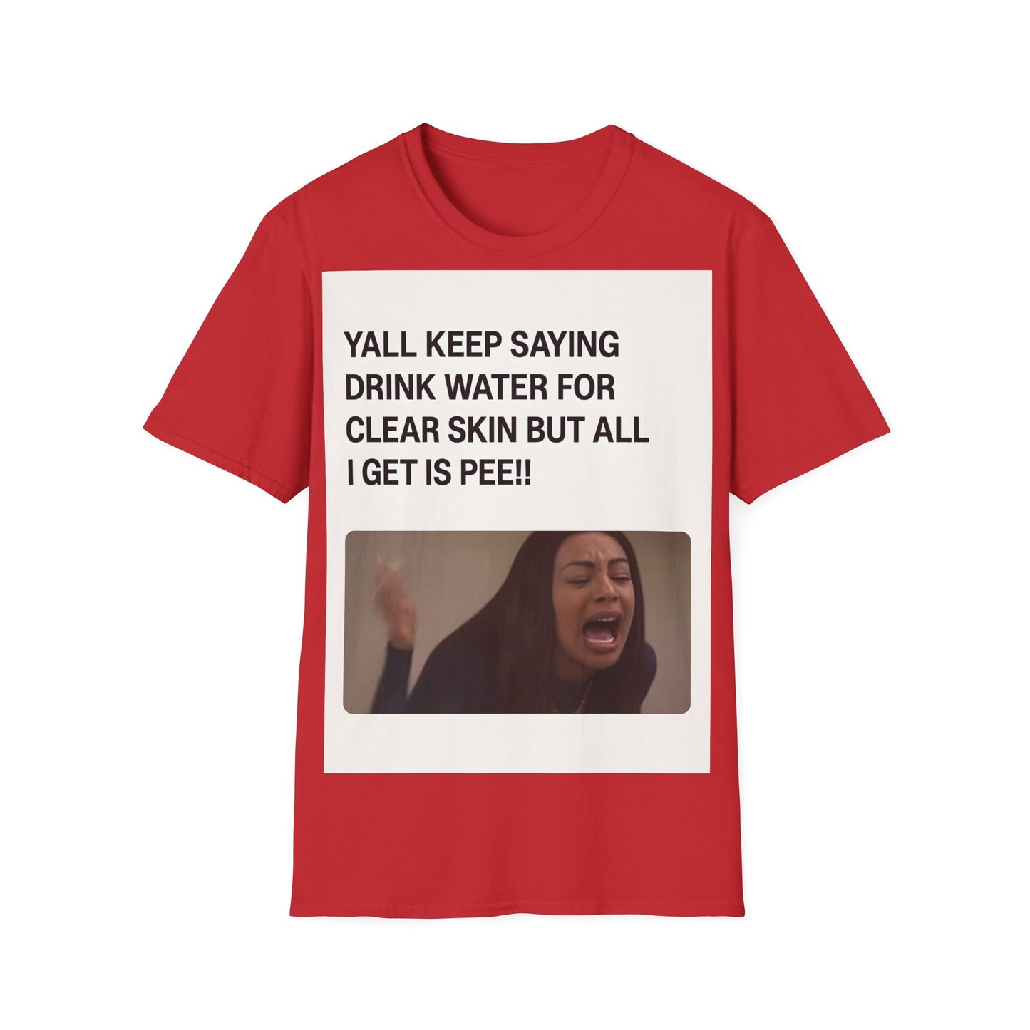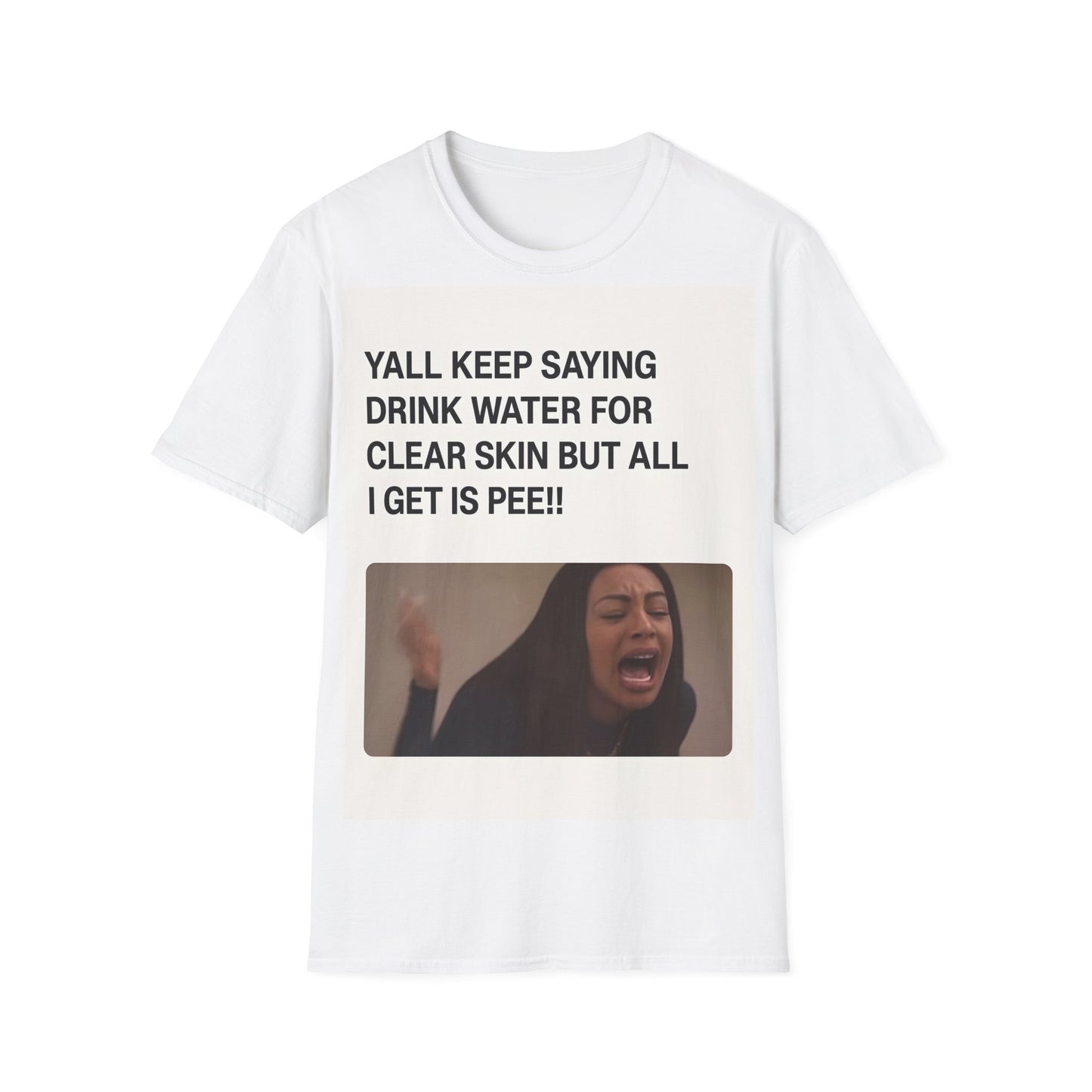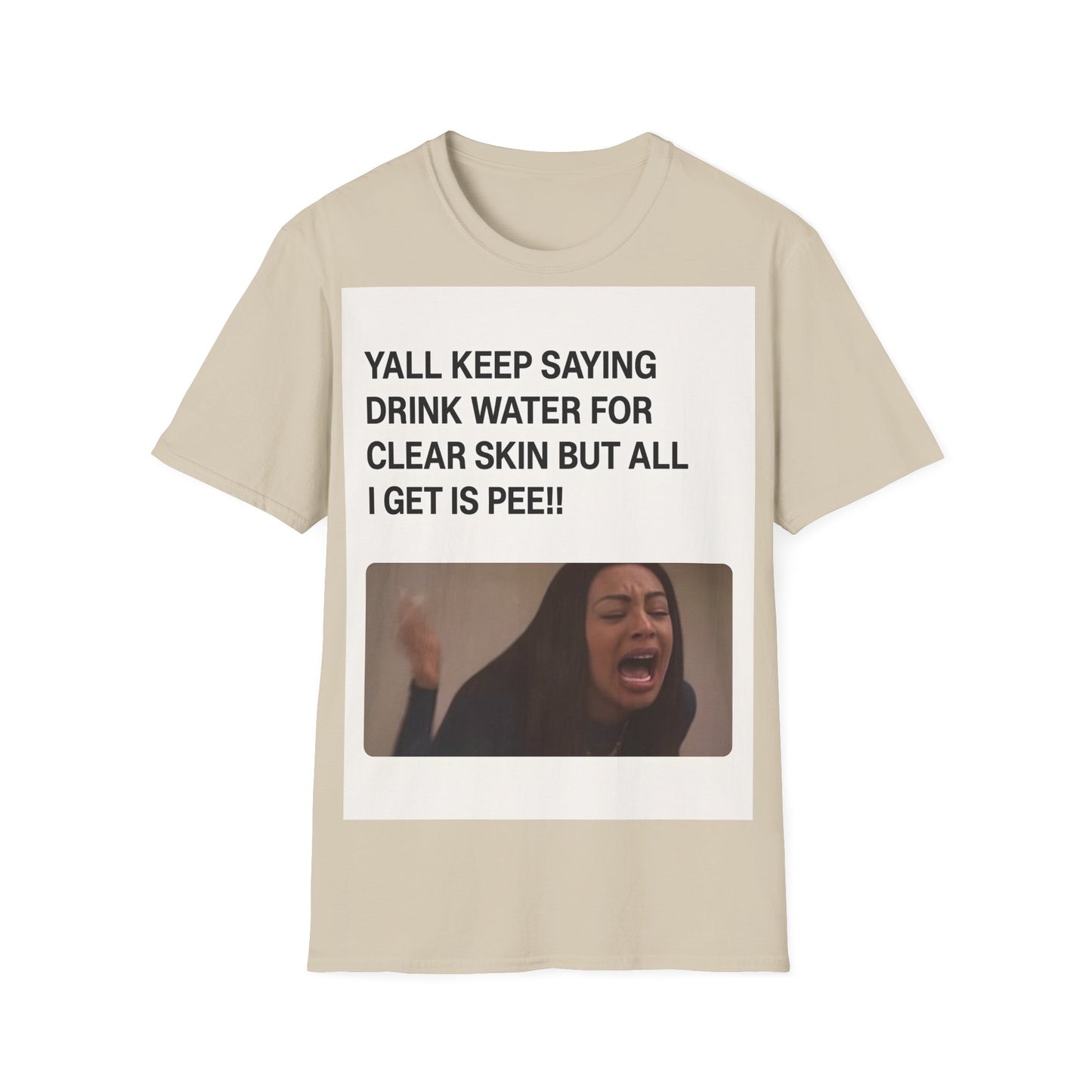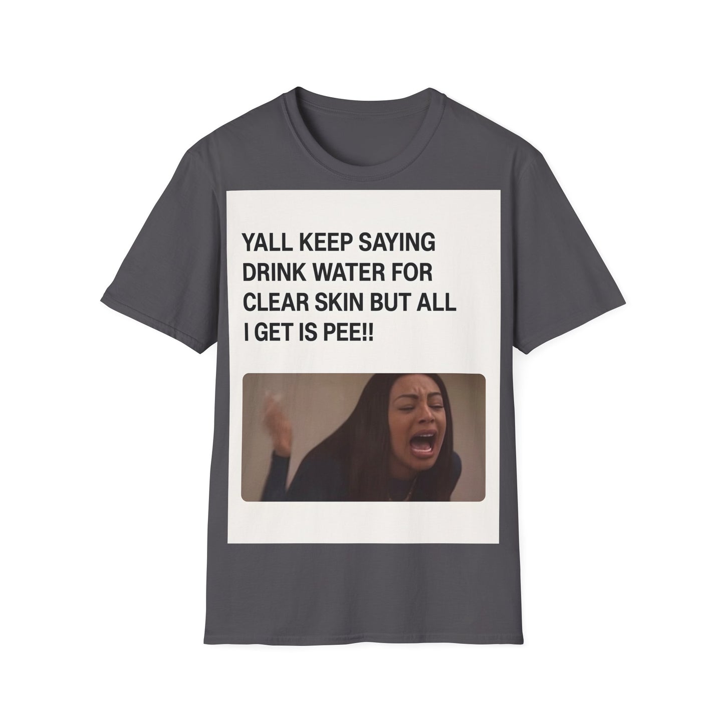 Hydration problems in a nutshell! This T-shirt sums up the ultimate frustration moment: you drink gallons of water for perfect skin - and all that happens is... well, you know!