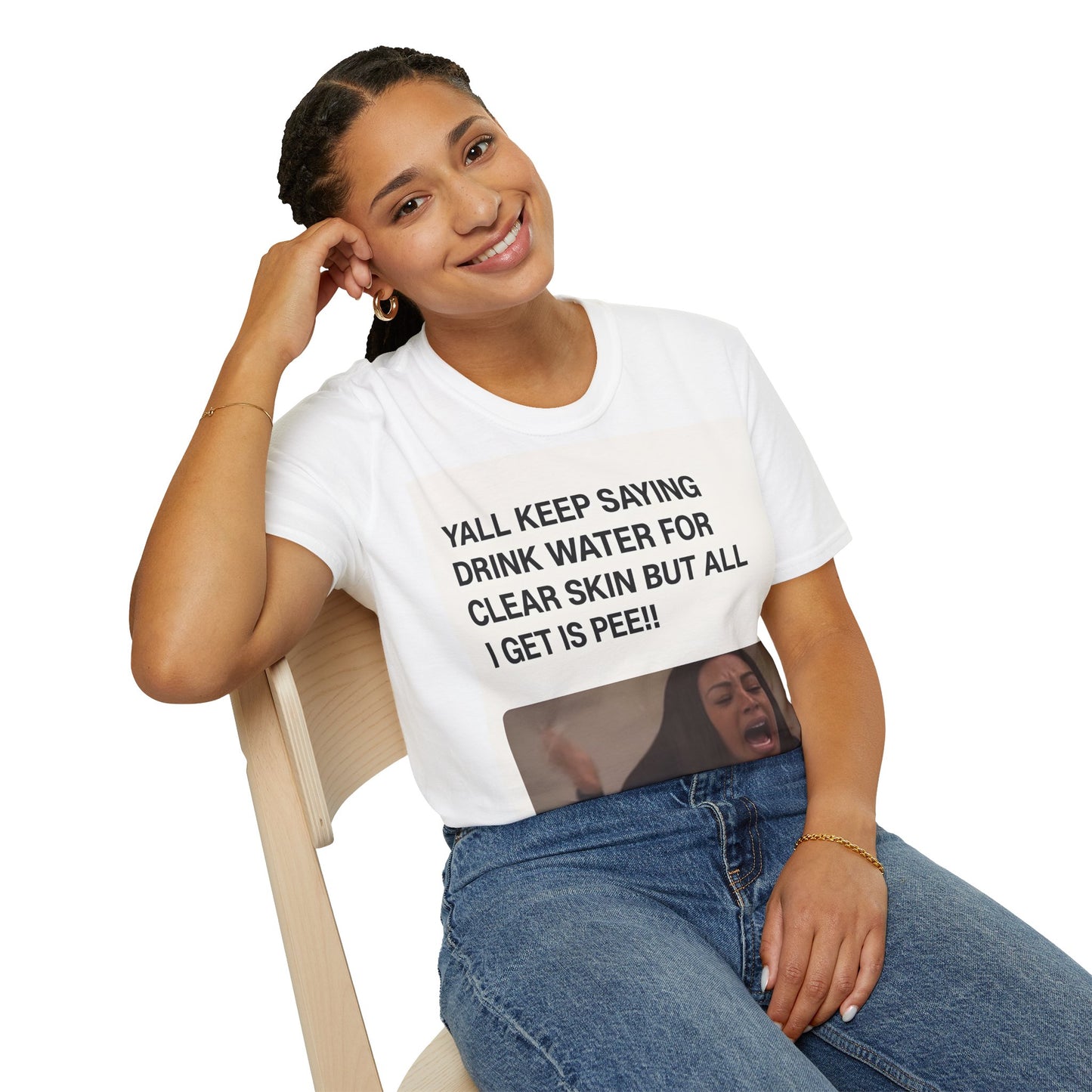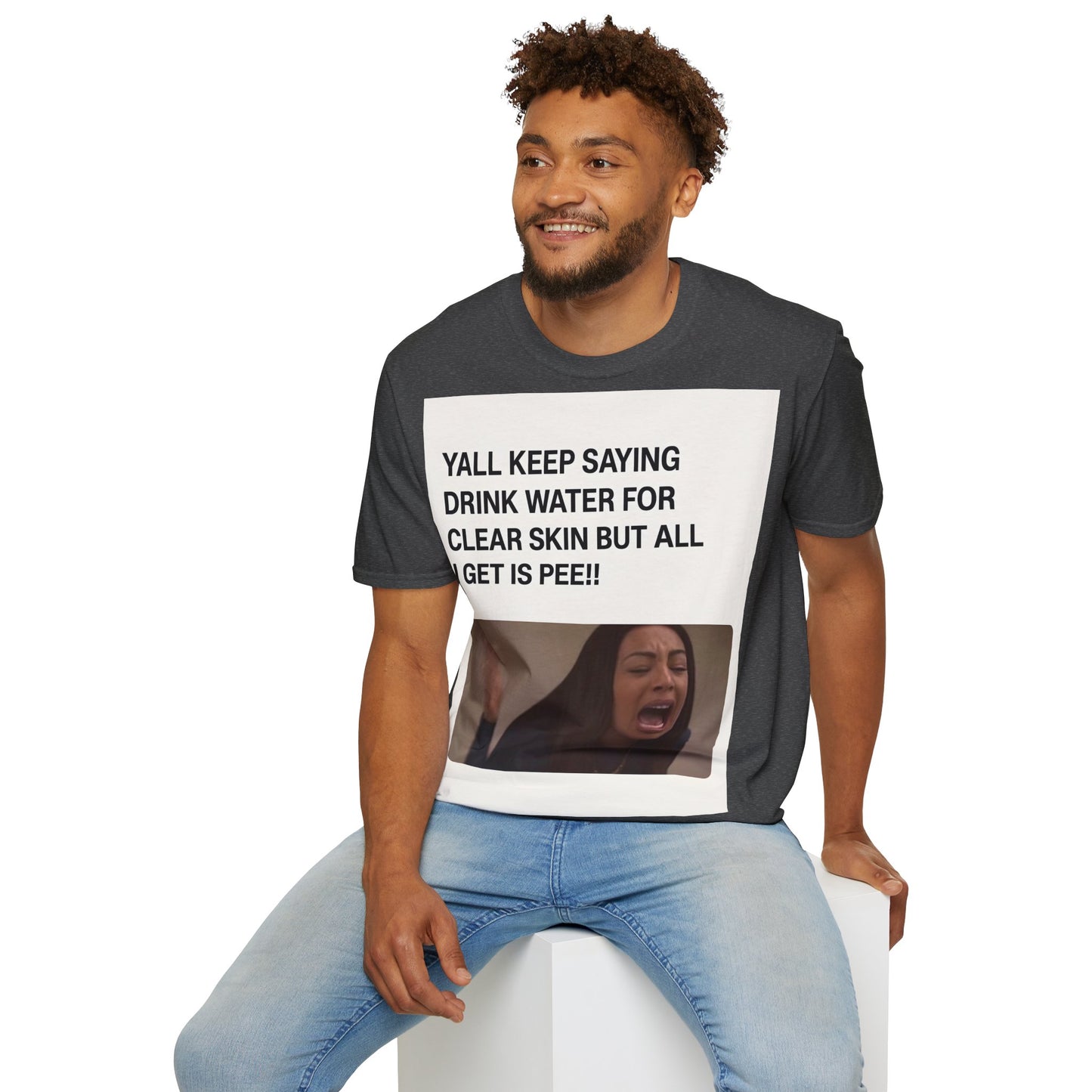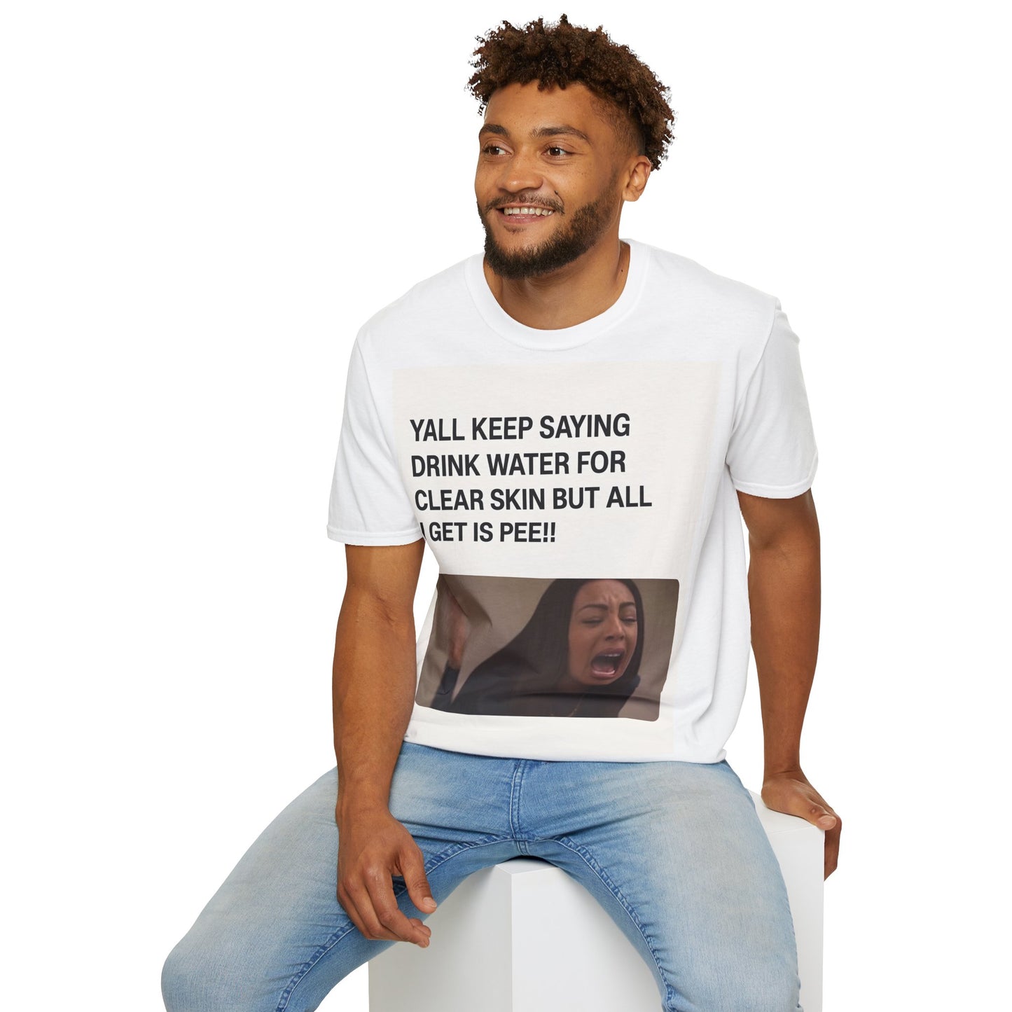 Hydration problems in a nutshell! This T-shirt sums up the ultimate frustration moment: you drink gallons of water for perfect skin - and all that happens is... well, you know!