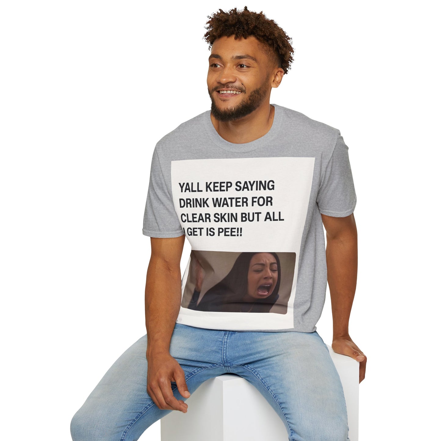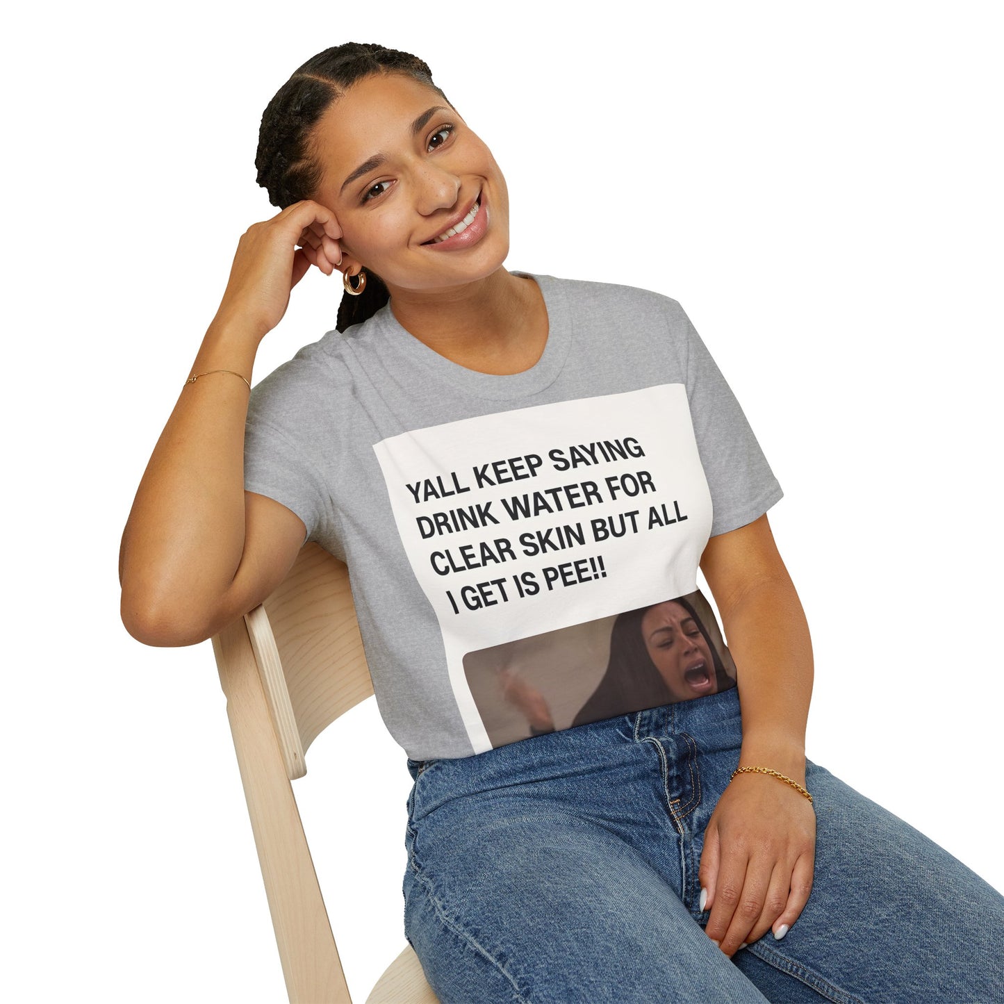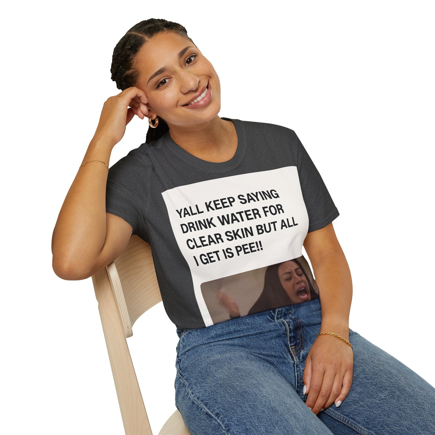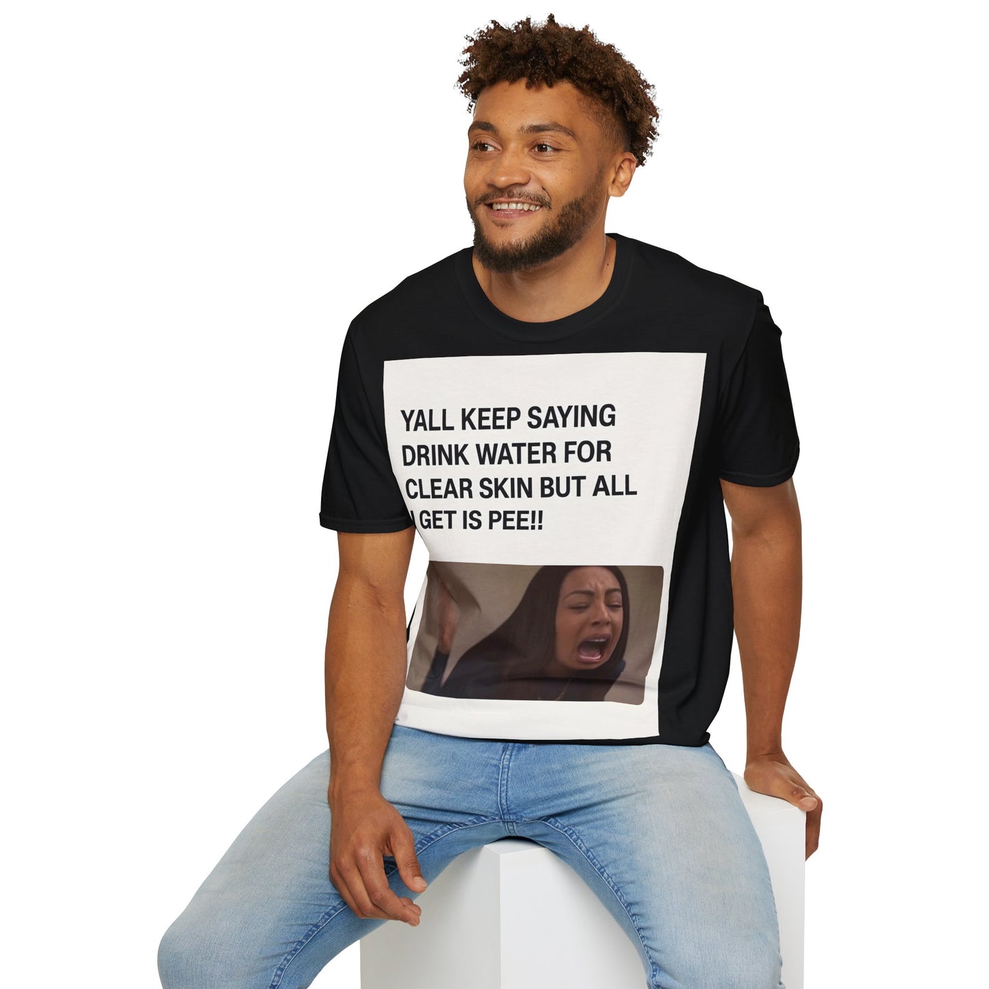 Hydration problems in a nutshell! This T-shirt sums up the ultimate frustration moment: you drink gallons of water for perfect skin - and all that happens is... well, you know!