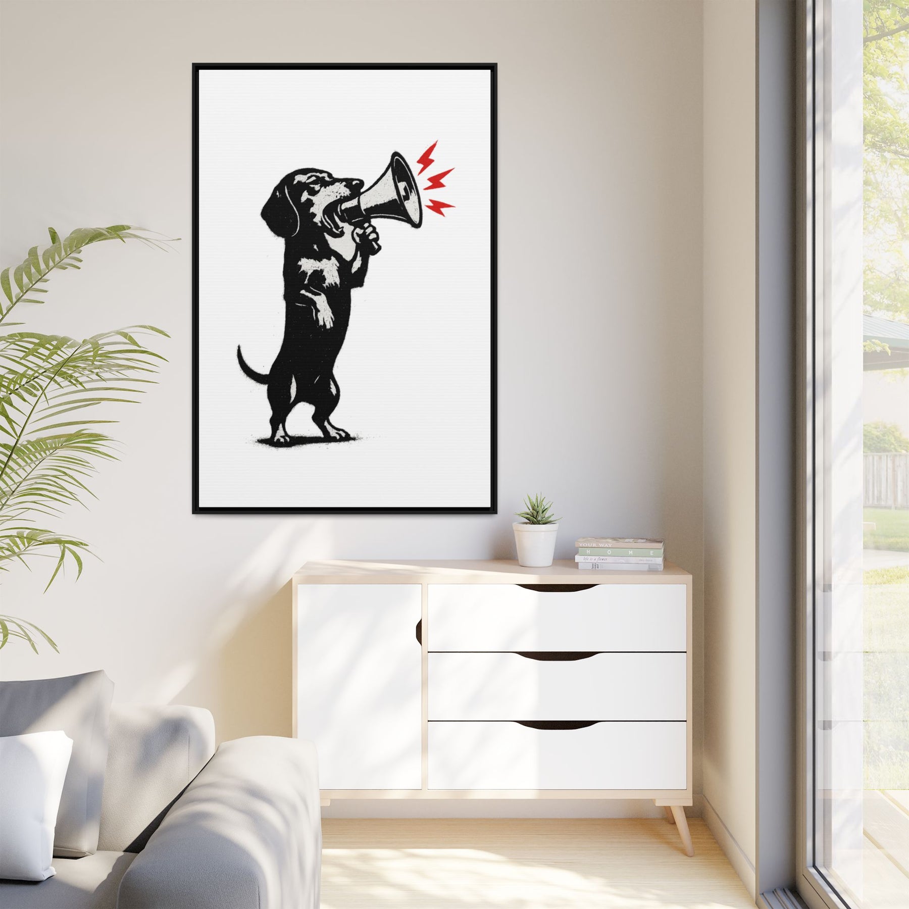 Dog with Megaphone – Satirisches Banksy-inspiriertes Kunstmotiv | Statement Design