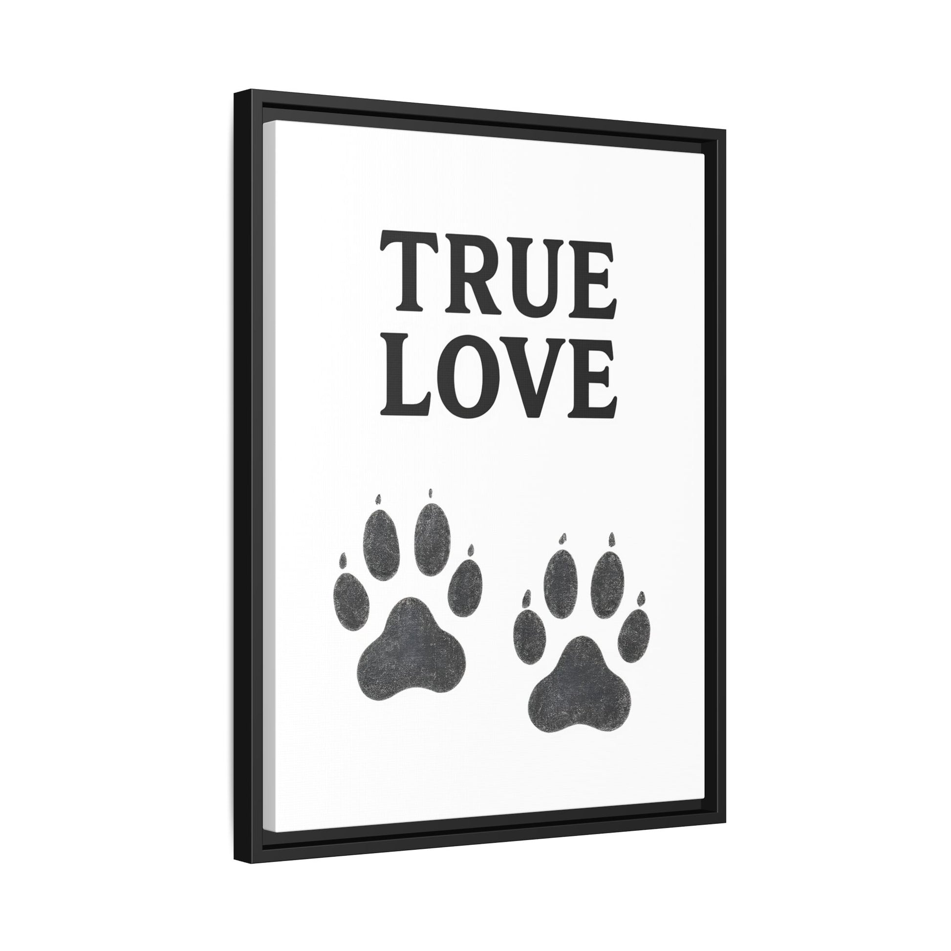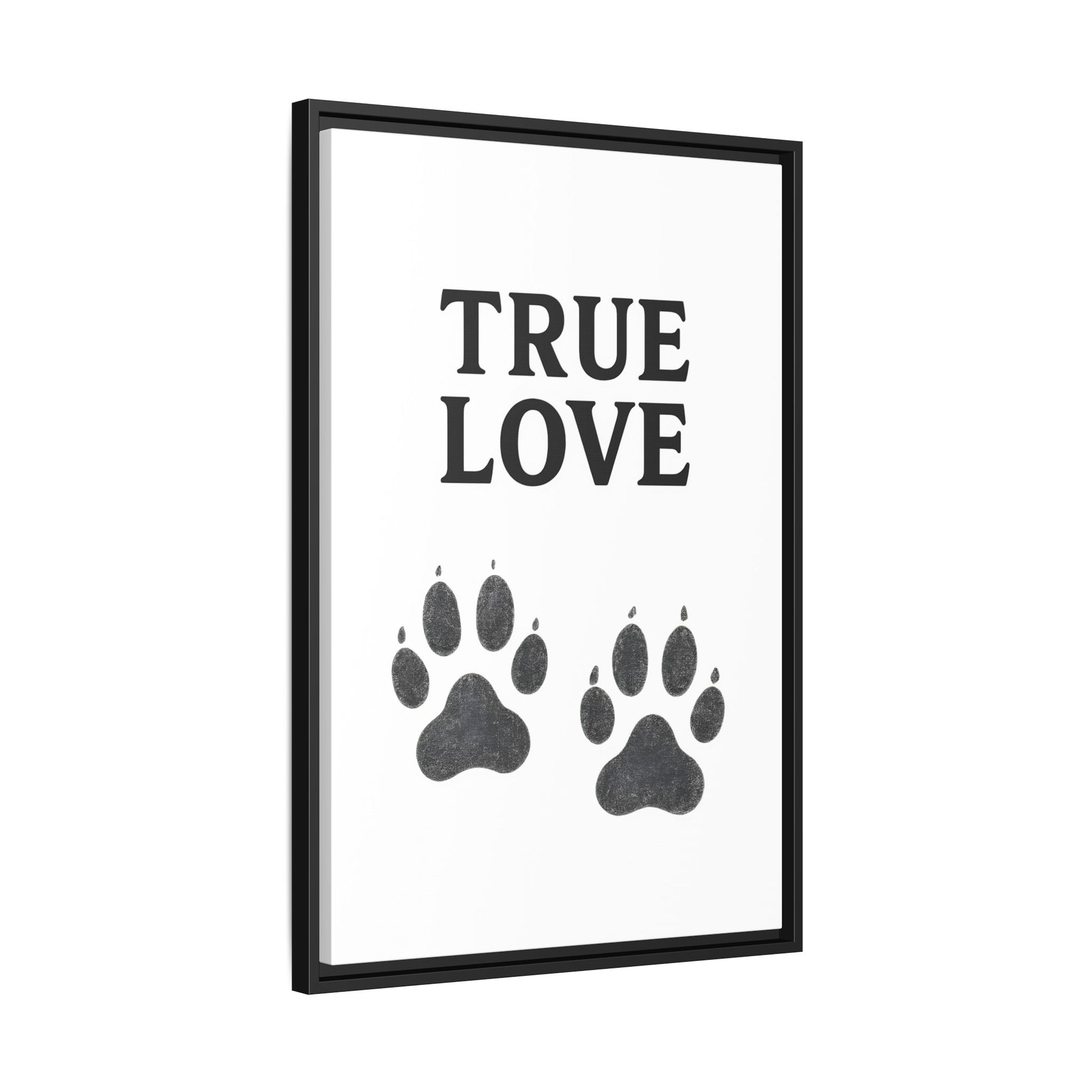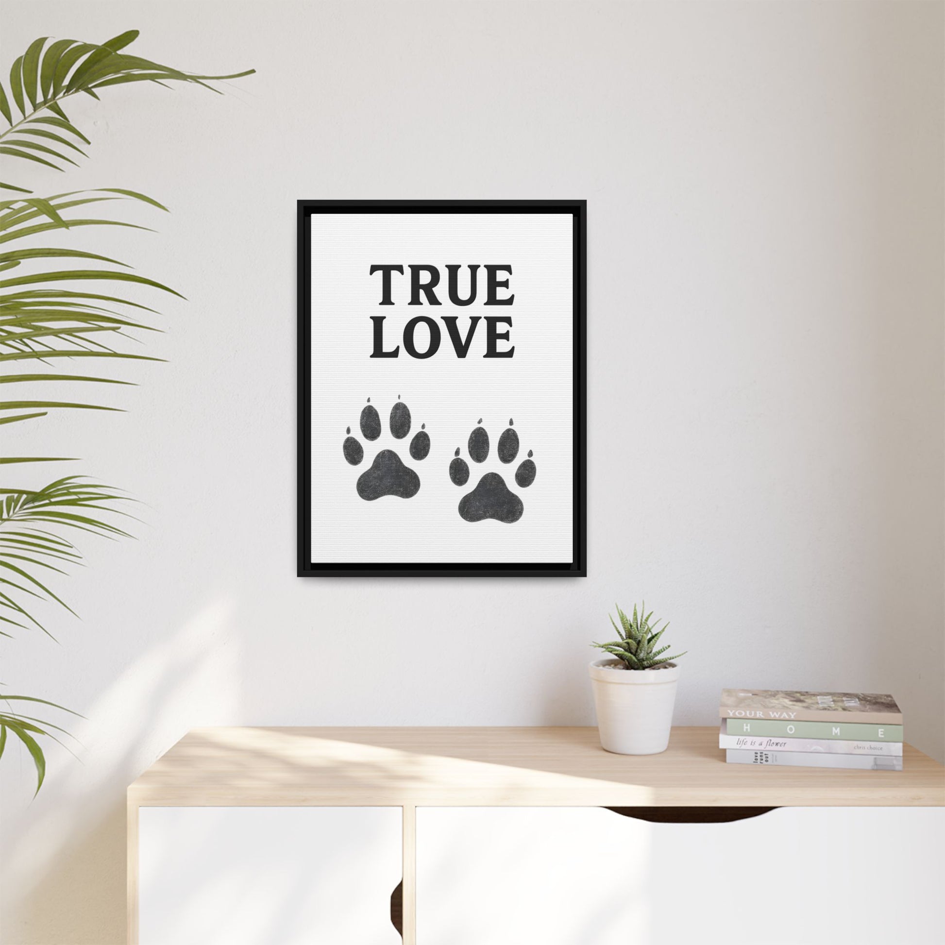 Enhance any interior space with beautiful art framed in a pinewood frame. Printed on a cotton-polyester canvas with a special proprietary coating to ensure long-lasting, vibrant colors and eye-catching detail. Made with sustainably sourced materials (Forest Stewardship Council certified),Manche Worte braucht man gar nicht groß erklären – TRUE LOVE gehört dazu. Dieses liebevoll gestaltete Wandbild kombiniert minimalistische Typografie mit zwei stilisierten Pfotenabdrücken, die mehr sagen als tausend Schnappschüsse.